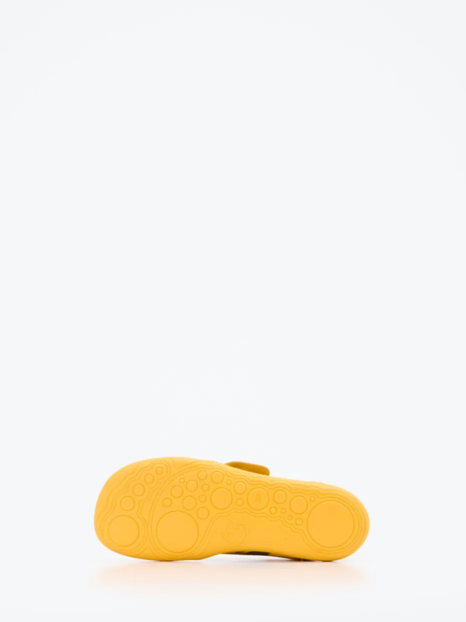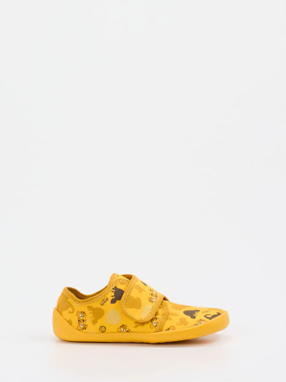 Tierischer Begleiter für zu Hause.Affenzahn bietet mit diesen Kinder-Hausschuhen ein fröhliches Modell für Alltag und Spiel. Die Schuhe aus weichem Textil mit matter Oberfläche und Allover-Tiermuster in sonnigem Gelb und Dunkelbraun werden durch kontrastierende Ziernähte akzentuiert. Der breite Klettverschluss erleichtert das An- und Ausziehen und sorgt für sicheren Halt. Die flexible Gummisohle mit gut profilierter Unterseite bietet Stabilität auf glatten Böden – ideal für Kita, Wohnzimmer oder Spielbereich. Tiermotive und Color-Pop-Farbgebung liegen im Kindermodetrend der Saison. Komfort und Alltagstauglichkeit treffen auf liebevolles Design – typisch Affenzahn.