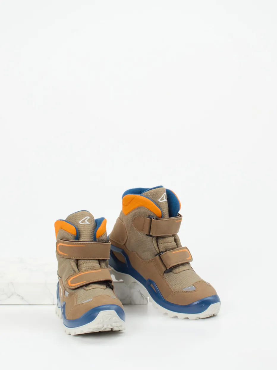 Abenteuer für kleine Entdecker.Die Marke Lowa liefert mit diesen Kinder-Wanderschuhen einen strapazierfähigen Allrounder für jedes Wetter. Ob Wanderung durch den Wald oder Spielplatz im Regen: Das sandbraune Veloursleder mit samtiger Haptik trifft auf atmungsaktive Mesh-Einsätze und eine griffig profilierte PU-Sohle. Kontrastdetails in Signalorange und Kobaltblau sowie ein reflektierender Fersen-Patch sorgen für ein modernes Erscheinungsbild mit Sicherheitseffekt. Zwei praktische Klettverschlüsse erleichtern das An- und Ausziehen und bieten festen Halt. Inspiriert vom Utility-Trend zeigt sich das Modell als funktionaler Begleiter im Streetwear-Stil. Wasserfest durch GORE-TEX und perfekt für aktive Kinderfüße im urbanen Outdoor-Einsatz.