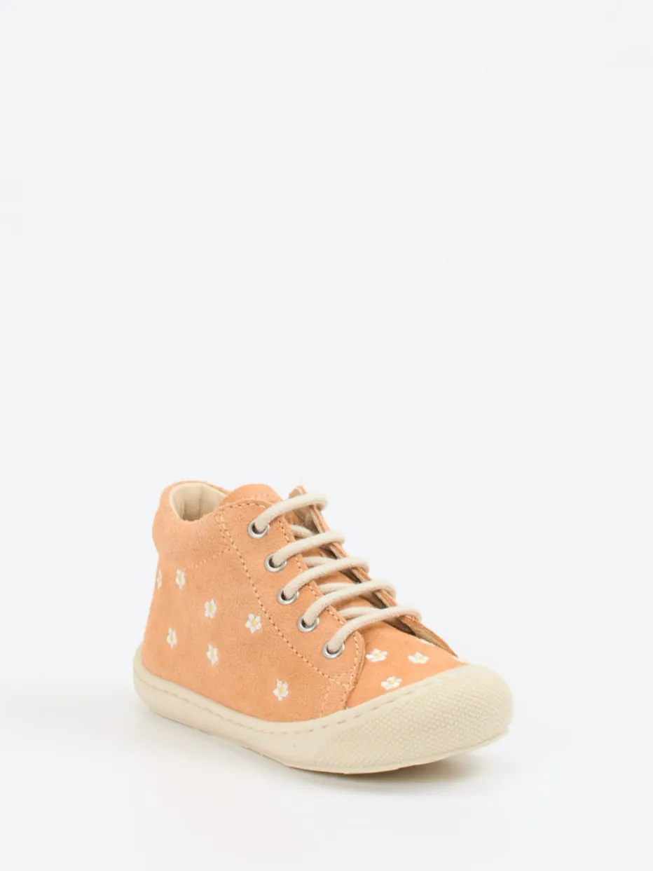 Blumenfreude zum ersten Schritt.Naturino bringt mit diesem liebevoll gestalteten Lauflernschuh einen idealen Begleiter für drinnen und draußen. Weiches Veloursleder in zartem Apricot umgibt den Kinderfuß angenehm sanft. Weiße Blumenstickereien, Ton-in-Ton-Nähte und eine rundkappige Silhouette sorgen für verspielte Akzente. Die beige Gummisohle gibt sicheren Halt bei den ersten Schritten, während das beigefarbene Lederfutter komfortabel einbettet. Die Schnürung und verstärkte Zehenpartie zeigen durchdachte Alltagstauglichkeit. Inspiriert von Skandi-Kindermode liegt das Modell stilistisch im Trend der Saison. Perfekt kombinierbar mit pastelligen Outfits. Hochwertige Verarbeitung für kleine Füße mit Bewegungsdrang – stilvoll umgesetzt von Naturino.