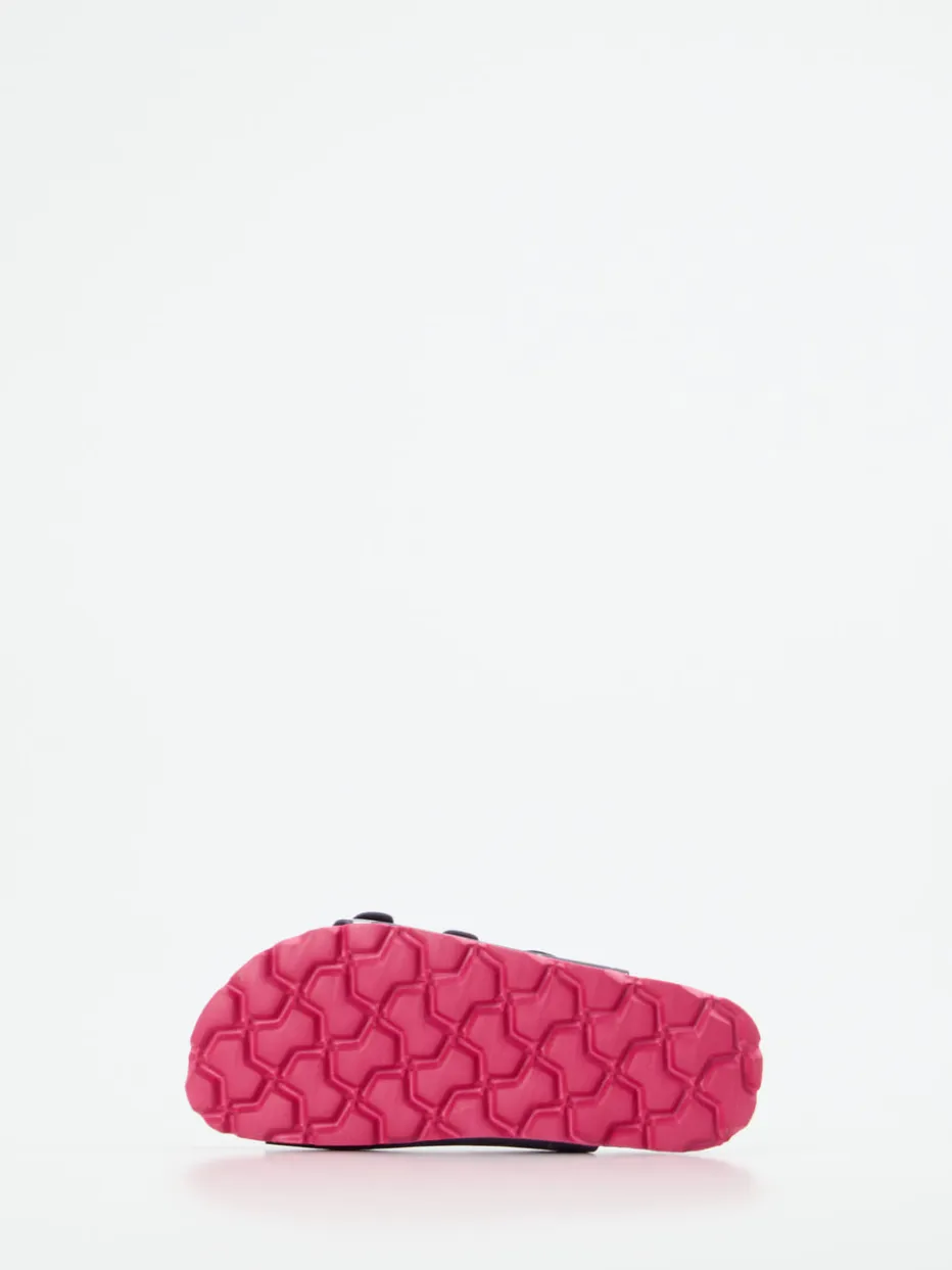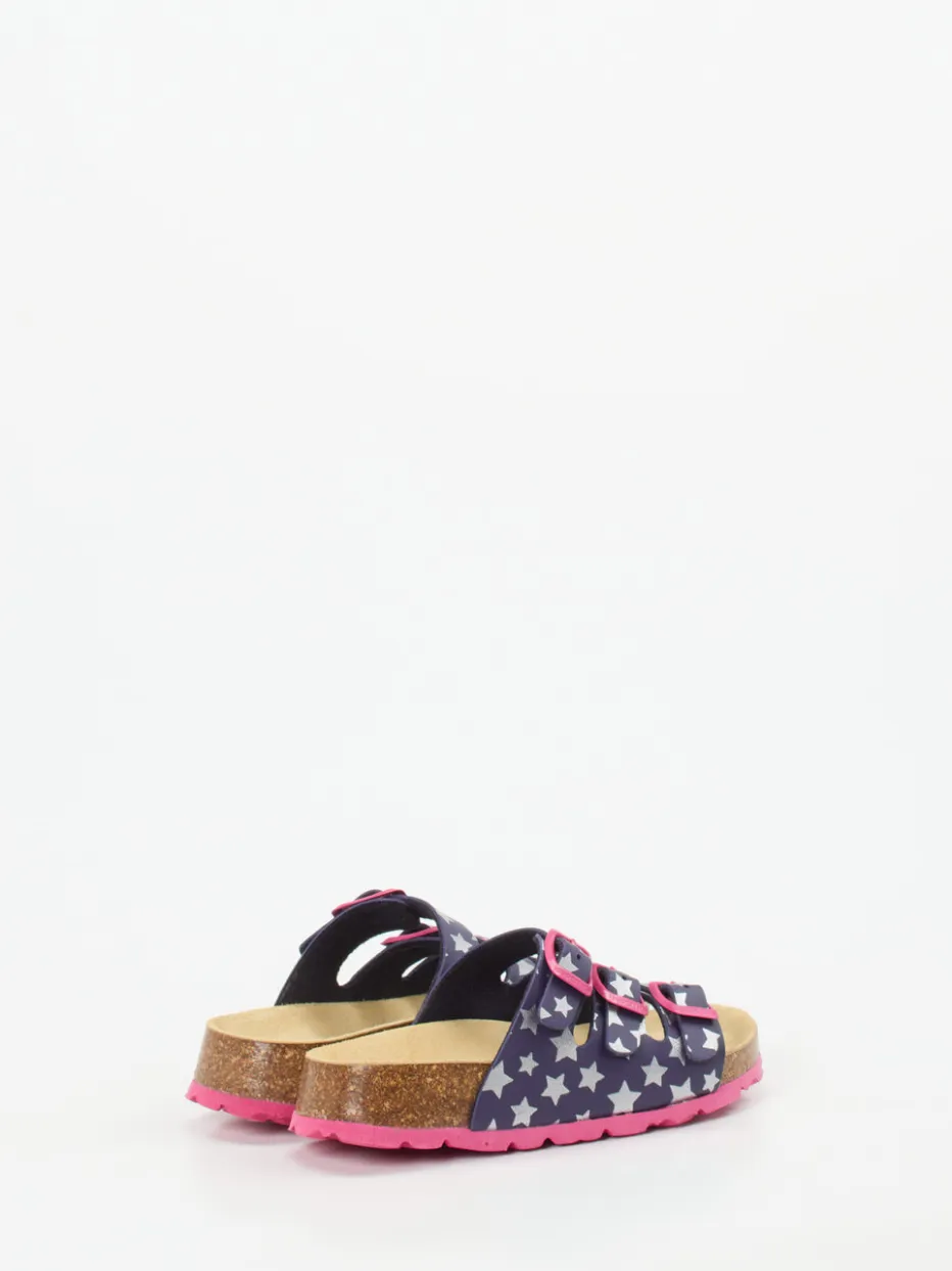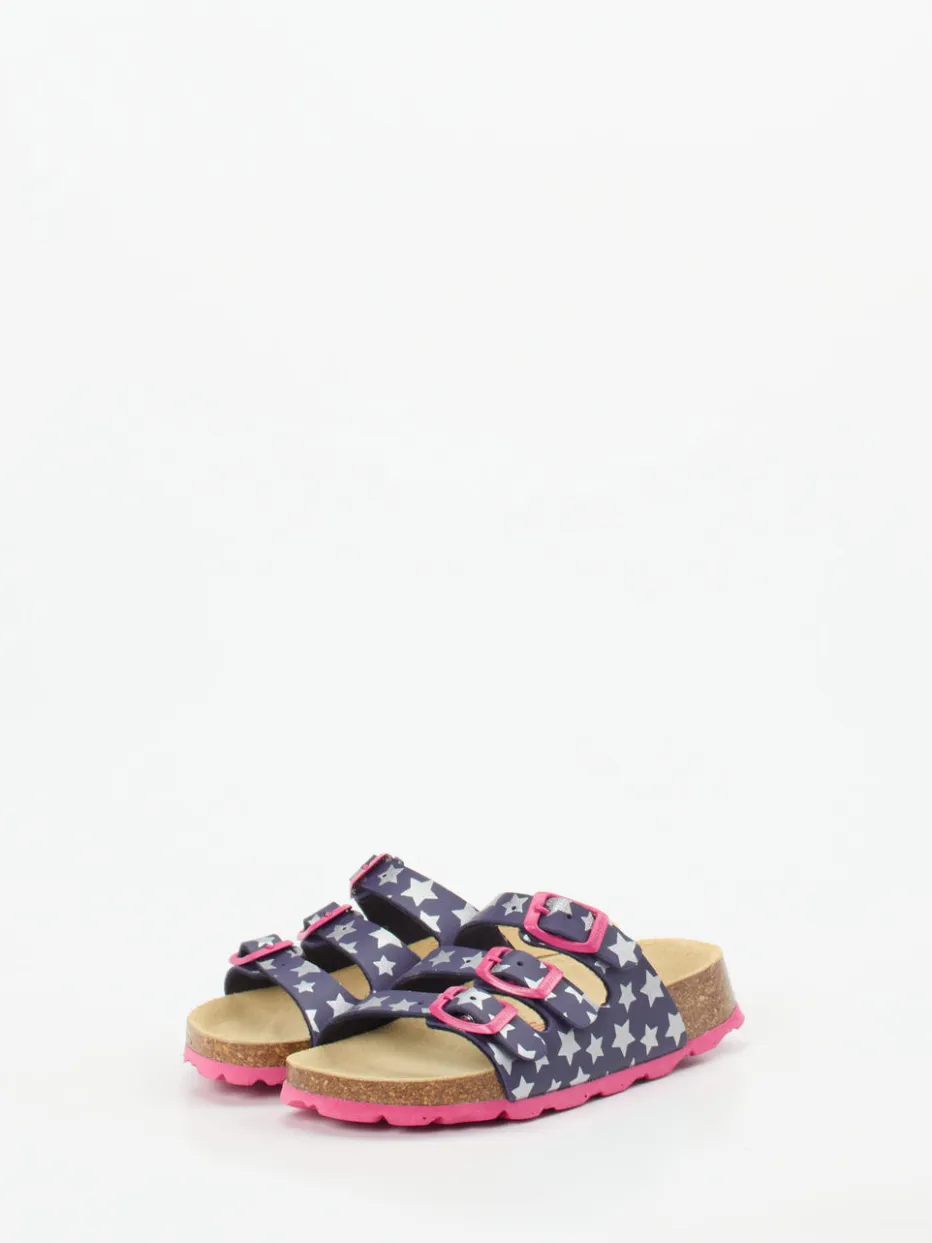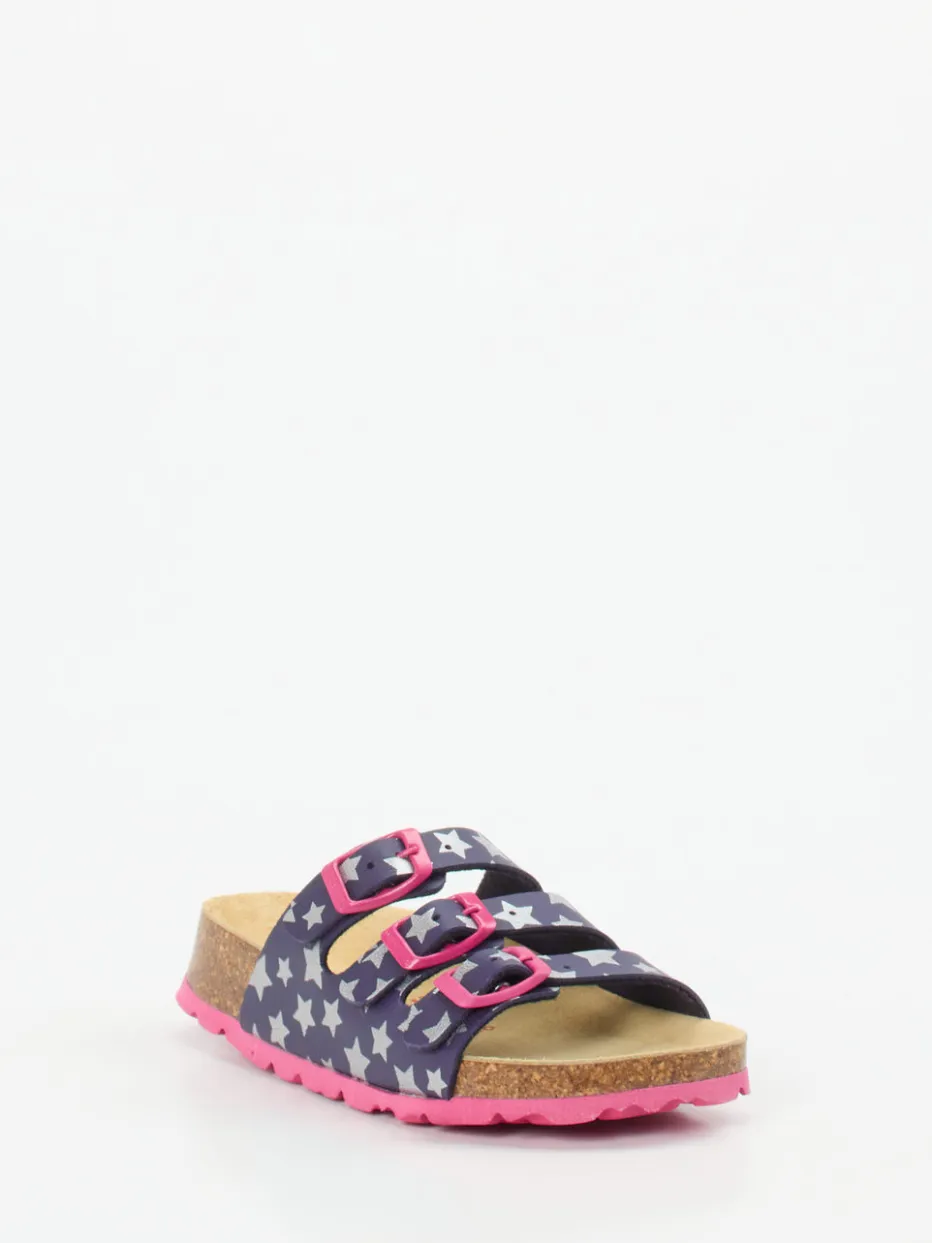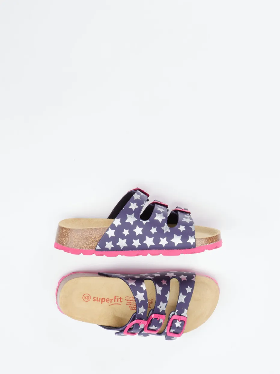 Bequem durch Haus und Freizeit.Superfit präsentiert eine Kinder-Pantolette, die Komfort und Stil kindgerecht vereint. Ideal für den Alltag zu Hause oder im Urlaub: Das Modell kombiniert robustes Synthetikmaterial in mattem Dunkelblau mit silberfarbenem Sternmuster und pinken Akzenten. Drei verstellbare Riemen mit Schnallen und ein weich gefüttertes Innenband sorgen für optimalen Sitz. Das lederbezogene, ergonomisch geformte Korkfußbett bietet hohen Tragekomfort, die pinke PU-Sohle ist rutschhemmend profiliert. Inspiriert vom Y2K-Trend mit verspieltem Print – ein Highlight für junge Komfortfans. Mit funktionalem Design und liebevollen Details unterstreicht Superfit den Anspruch an Qualität und Kindgerechtigkeit.