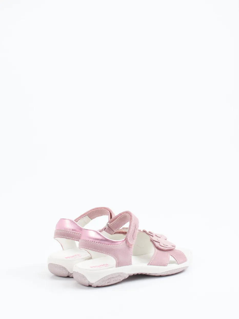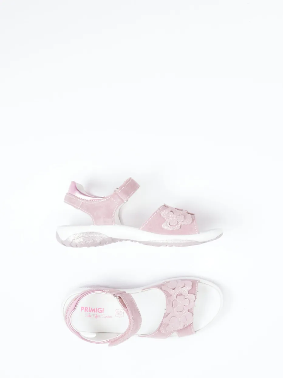 Mädchenhaft mit Glitzer und Komfort.Primigi präsentiert eine liebevoll gestaltete Sandale für Kinder. Ideal für aktive Sommertage bietet dieses Modell mit seinem rosa Veloursleder und samtig glänzender Oberfläche ein angenehmes Tragegefühl. Die offene, ergonomische Form und die gepolsterte Innensohle sorgen für anhaltenden Komfort, während der Klettverschluss kinderleichtes An- und Ausziehen ermöglicht. Glitzernde Blumenapplikationen, Metallic-Fersenakzente und eine funkelnde Laufsohle setzen verspielte Highlights, die aktuelle Pastell- und Glittertrends spiegeln. Ein femininer Freizeitschuh mit durchdachtem Design für kleine Abenteurerinnen.