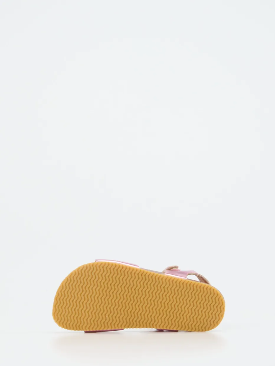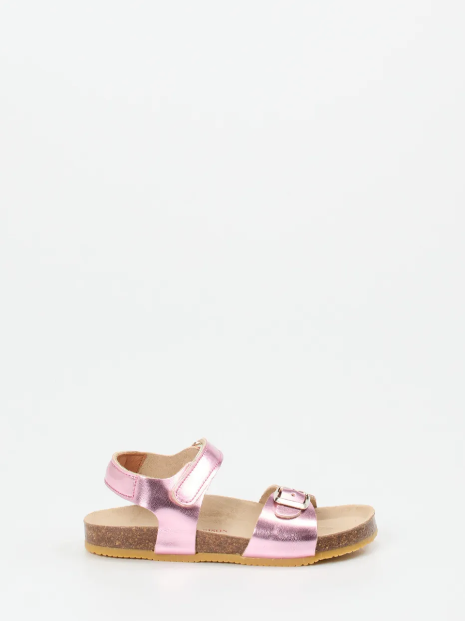 Funkelt im Sommerlicht.Die Marke Ralph Harrison Classic präsentiert hier eine detailverliebte Mädchensandale für Alltag und Urlaub. Dank verstellbaren Riemen am Vorderfuß und um die Ferse sorgt der Klett-Schnallenverschluss für sicheren Halt – auch beim Toben. Das schimmernde Metallic-Finish in Rosa verleiht der offenen Silhouette eine verspielte Eleganz. Die strukturierte Gummisohle ist rutschhemmend, während das ergonomische Korkfußbett angenehmen Komfort bietet. Mit fein glänzender Oberfläche und silberfarbenen Schnallen trifft Funktion auf Trendbewusstsein. Ideal kombinierbar zu Shorts oder Kleidern. Hochwertige Auswahl für komfortorientierte Kinderfüße mit Stilanspruch.