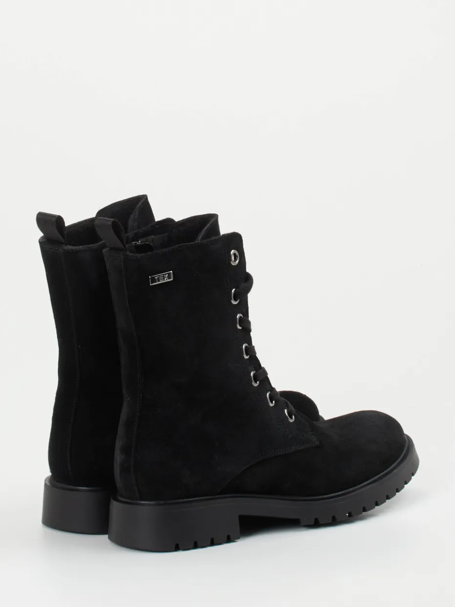 Diese Damenboots verbinden wetterfestes Veloursleder mit funktionalen Details wie Innenreißverschluss und robuster Profilsohle – ideal für Herbst und Winter.