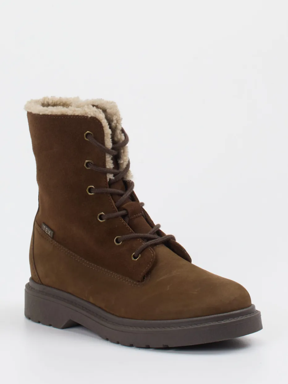 Alltagstauglich bei Frost und Schnee.Die Marke Ralph Harrison Classic präsentiert gefütterte Damenstiefel im Outdoor-Look. Ob für den Weg zur Arbeit oder einen Spaziergang im Schnee – diese hochschaftigen Schnürboots überzeugen durch braunes Nubukleder mit samtig angerauter Oberfläche, ein warmes Futter in Lancaster Beige und eine robuste Gummisohle mit rutschfester Profilierung. Schnürung und seitlicher Reißverschluss sorgen für ein komfortables Anziehen. Dezente Details wie Ton-in-Ton-Nähte und ein TEX-Label unterstreichen das funktionale Design. Stilistisch passen sie bestens zum Natural-Tones-Trend der Wintersaison. Ein verlässlicher Begleiter mit zeitloser Optik und funktionalem Anspruch.