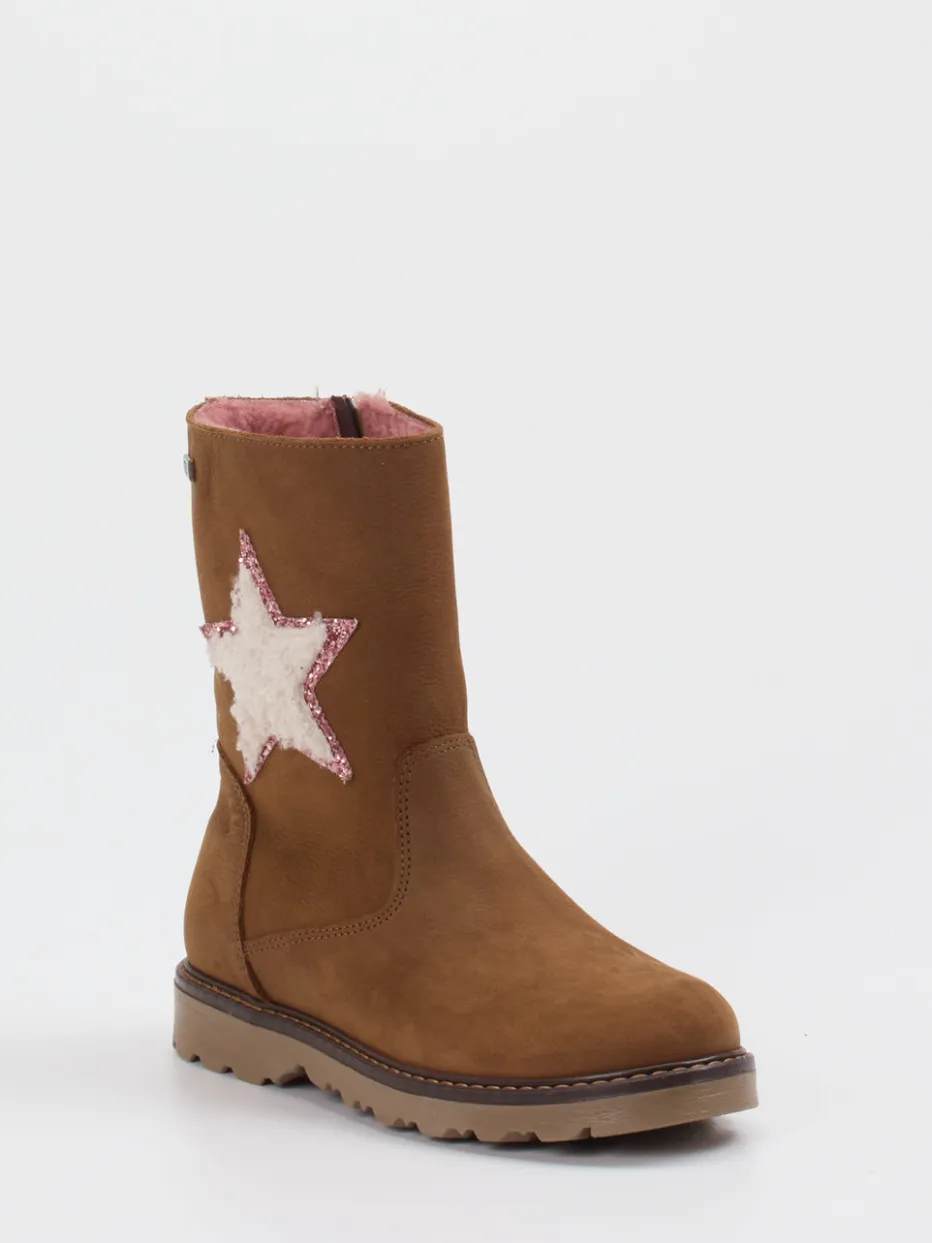 Der warme Kinderstiefel überzeugt mit Nubukleder, kuscheligem Futter und glitzernder Stern-Applikation – ideal für stilvolle Wintertage.