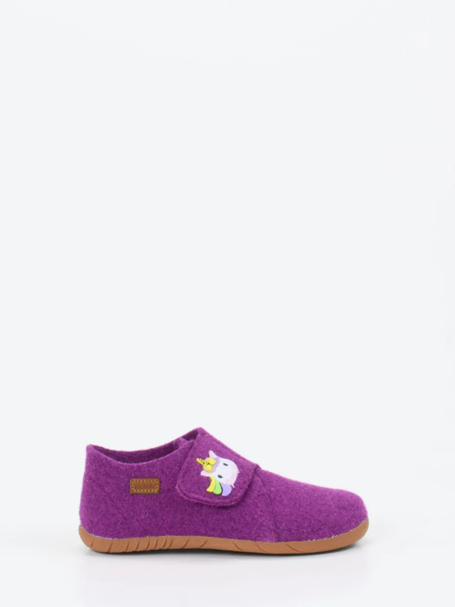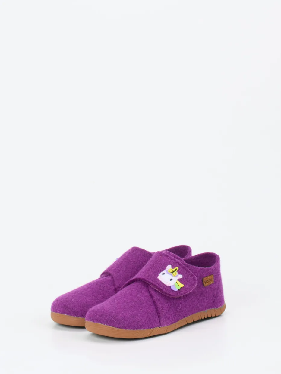Gemütlichkeit mit Einhorn-Charme.Richter präsentiert diesen liebevoll gestalteten Kinderhausschuh mit Klettverschluss. Für Spielzeit im Kinderzimmer oder entspannte Nachmittage daheim bietet der Schuh einen idealen Begleiter. Sein Obermaterial besteht aus rotviolettem Filz mit weich-filziger Haptik und unterstützt die natürliche Wärmeisolation. Die helle, flexibel profilierte Gummisohle sorgt für Trittsicherheit, während die geschlossene, rund geformte Silhouette und das gepolsterte Innenleben zusätzlichen Komfort liefern. Eyecatcher: die verspielte Einhorn-Applikation über dem Klettverschluss. Harmonisch abgesetzte Farben unterstreichen den kindgerechten Look. Ein fröhlicher Wohlfühl-Schuh in bewährter Richter-Qualität.