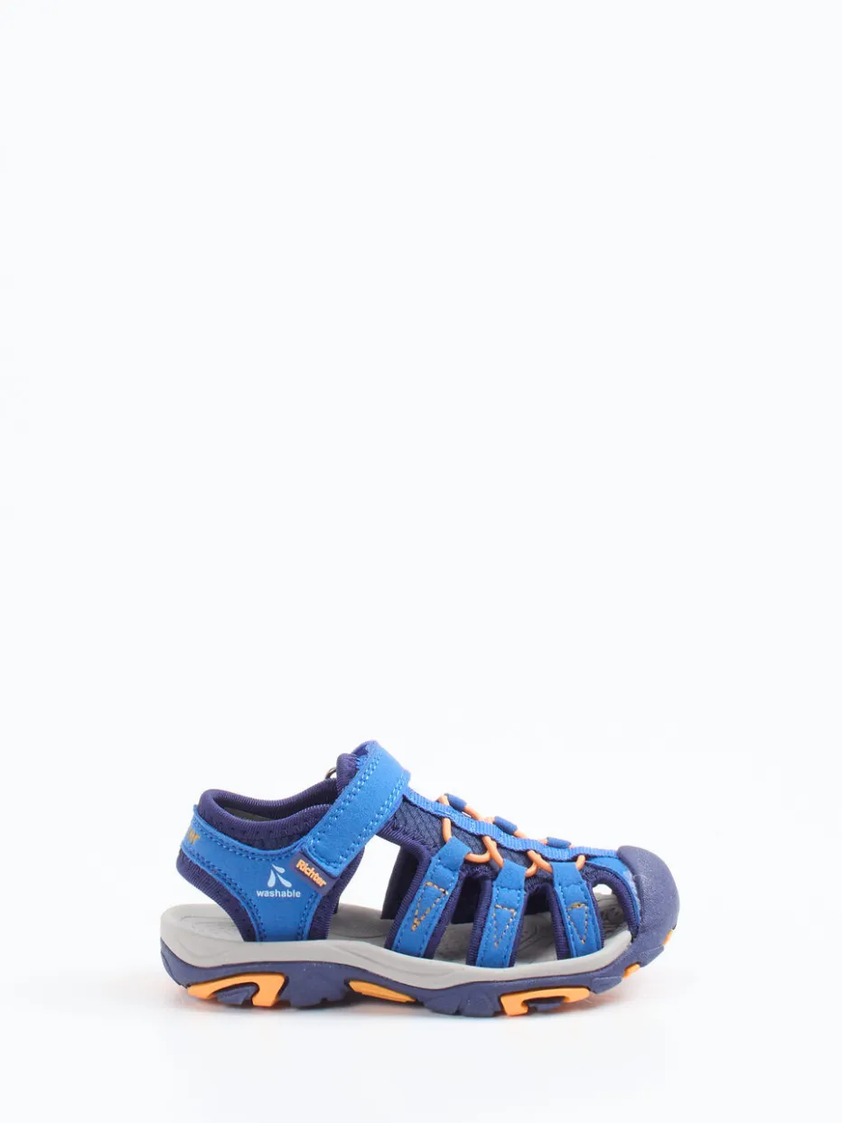 Für aktive Sommertage draußen.Richter präsentiert robuste Outdoorsandalen für Kinder. Beim Toben im Park, auf Reisen oder bei Wanderungen schützt die geschlossene Zehenkappe zuverlässig und sorgt das atmungsaktive Design mit Cut-outs für Luftzirkulation. Aus strapazierfähigem Textil gefertigt, wirken die sandalen durch die matte Oberfläche, Kontrastnähte in Orange und eine farblich abgesetzte Gummisohle frisch und dynamisch. Der Klettverschluss unterstützt ein unkompliziertes An- und Ausziehen. Ob Gorpcore oder funktionale Kidswear – dieser Look ist sommertauglich und modern. Ideal zu Outdoorhose oder UV-Shirt kombinierbar. Pflegeleichte Qualität für unbeschwertes Spielen – typisch Richter.