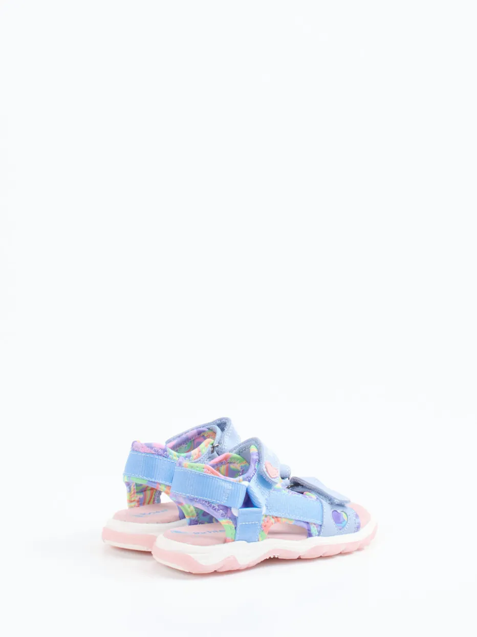 Die Outdoor-Sandale aus robustem Textil in sanftem Pastellblau kombiniert mädchenhafte Verspieltheit mit funktionalem Design. Herz-Applikationen, ein farbenfrohes Innenfutter sowie kontrastfarbige Nähte sorgen für einen charmanten Auftritt. Dank verstellbarer Klettverschlüsse und gepolsterter Innensohle ist ein sicherer und bequemer Sitz gewährleistet. Die rutschfeste Gummisohle unterstützt aktive Einsätze im Alltag oder Urlaub. Inspiriert vom Utility-Trend und Y2K-Comeback begeistert diese Sandale styleaffine Kids.