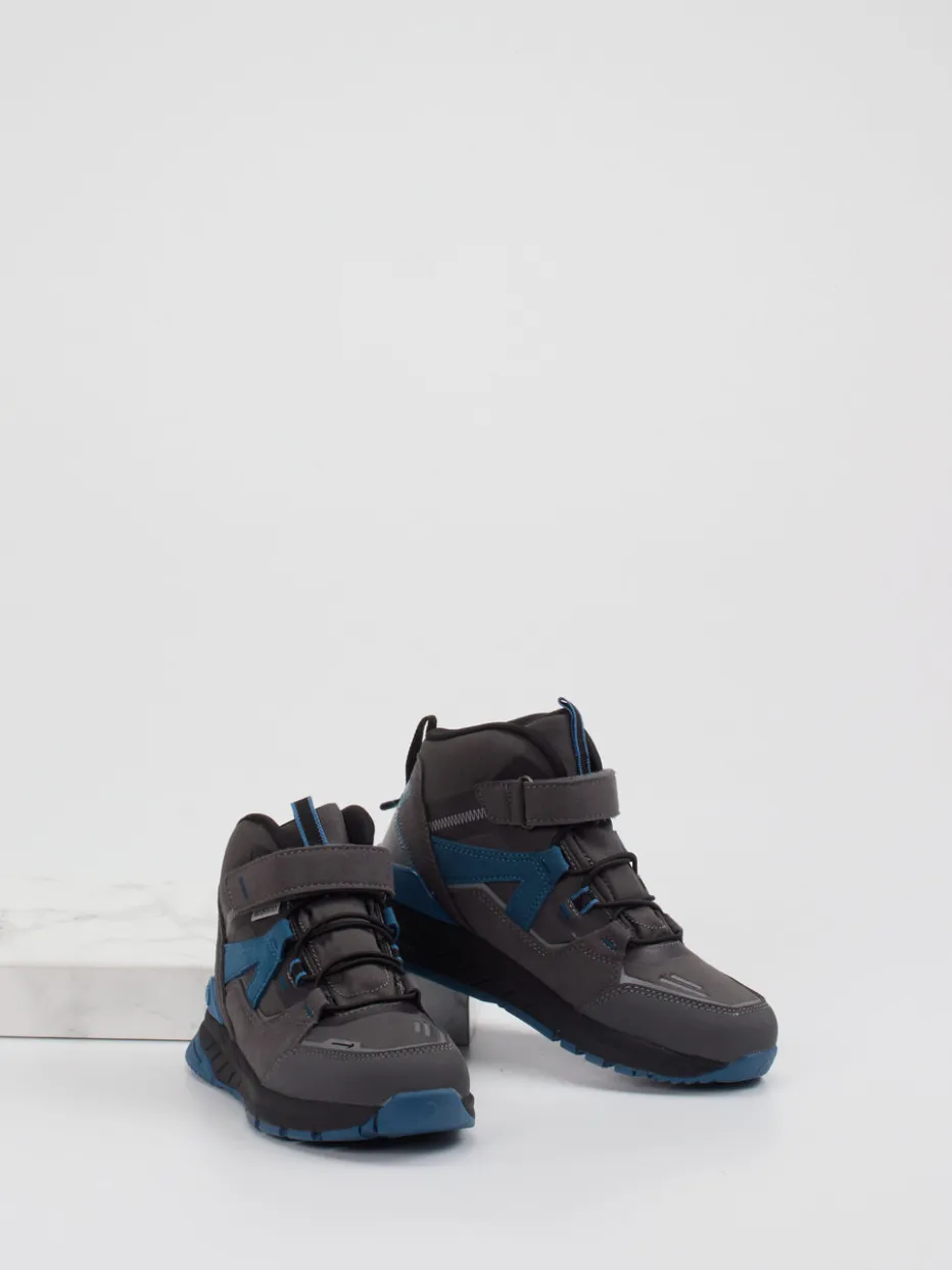 Der robuste Mid-Cut-Schuh kombiniert hochwertiges Veloursleder mit reflektierenden Elementen und einer griffigen Gummisohle – durchdacht für aktive Kinderfüße.