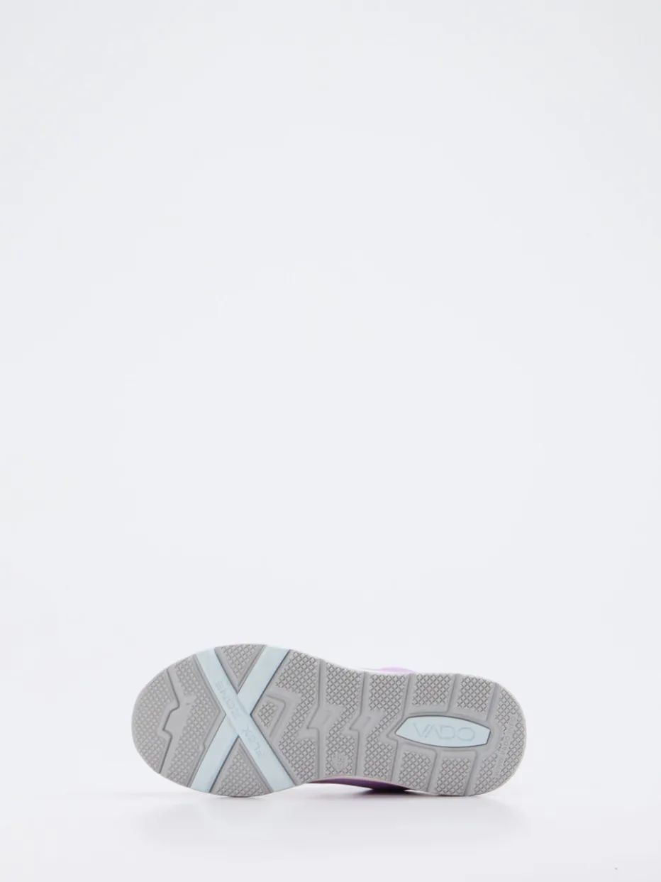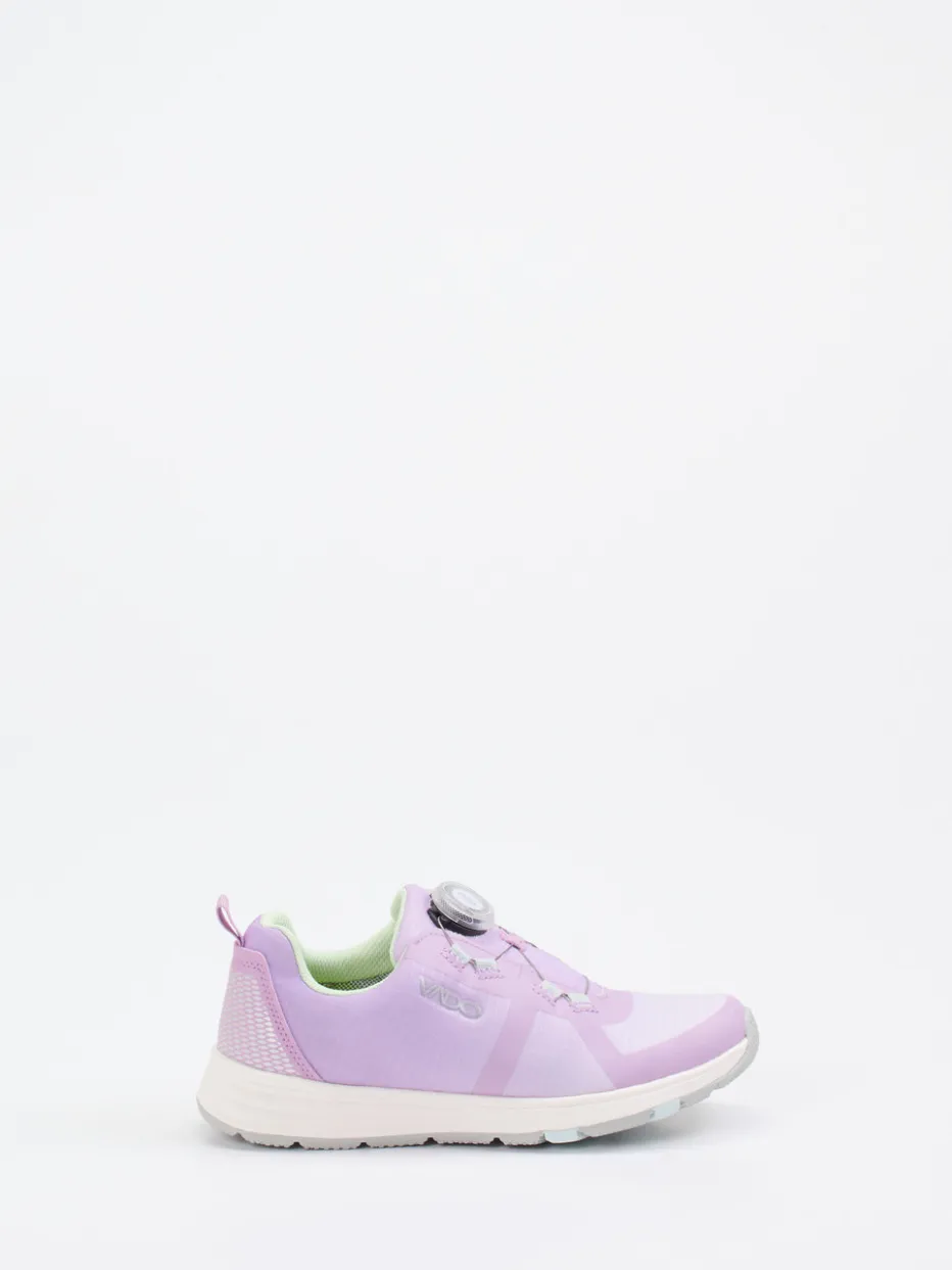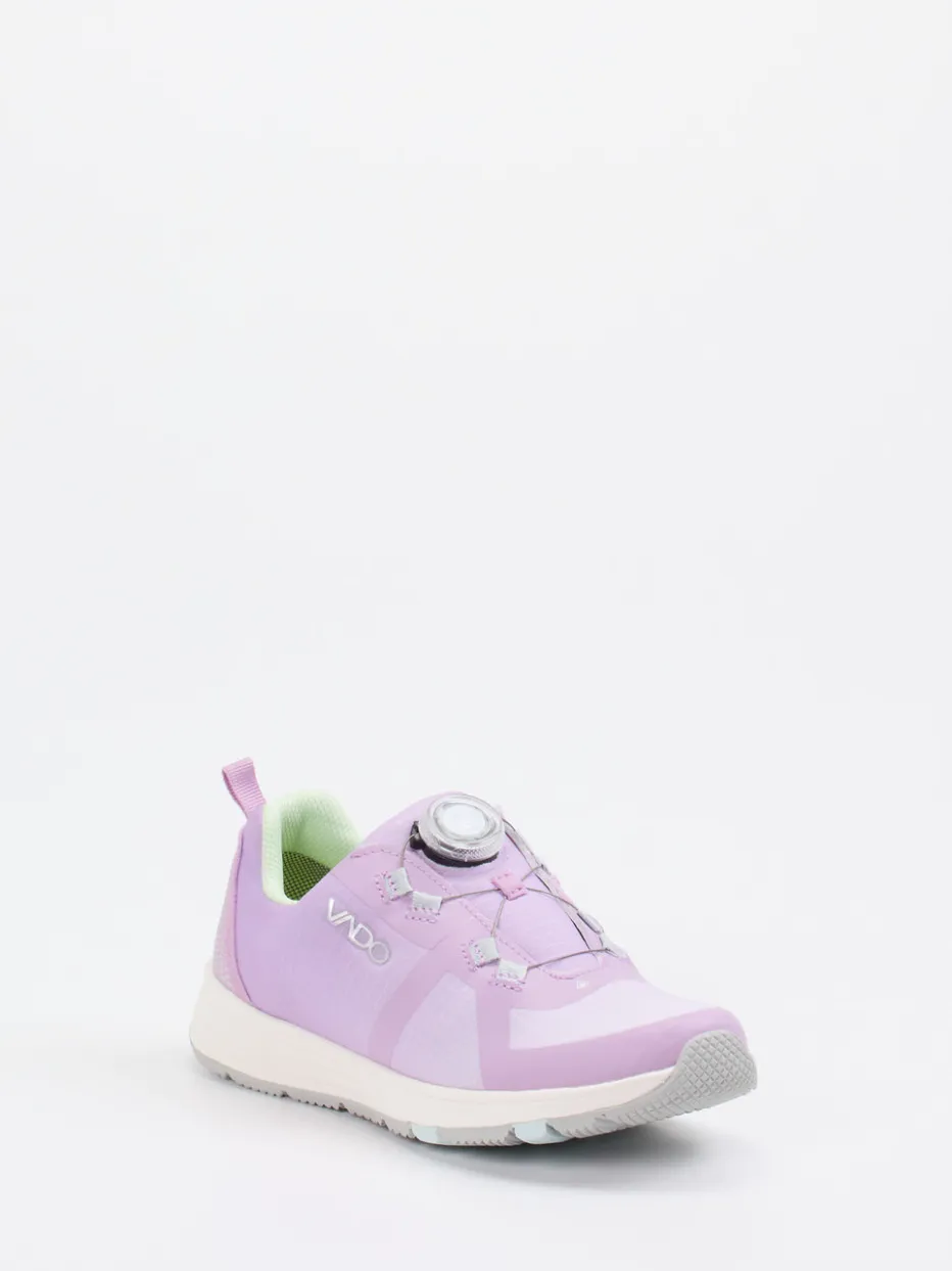 Technik trifft Leichtigkeit.Vado präsentiert mit diesem Kinder-Sneaker ein sportlich designtes Modell für Alltag und Freizeit. Ideal für bewegungsfreudige Tage kombiniert der Schuh leichtes Textil-Obermaterial mit atmungsaktivem Mesh – samtig matt und unterstützt durch robuste TPU-Verstärkungen. Flieder dominiert die zierliche Silhouette, Pastellgrün und Hellgrau setzen sanfte Akzente. Der reflektierende Fersenbereich erhöht die Sichtbarkeit. Dank innovativem Boa-Drehverschluss ist schnelles und individuelles Anpassen garantiert. Die profilierte Gummisohle bietet sicheren Halt. Ein dynamischer Begleiter mit funktionalem Mehrwert – typisch Vado Kidswear.