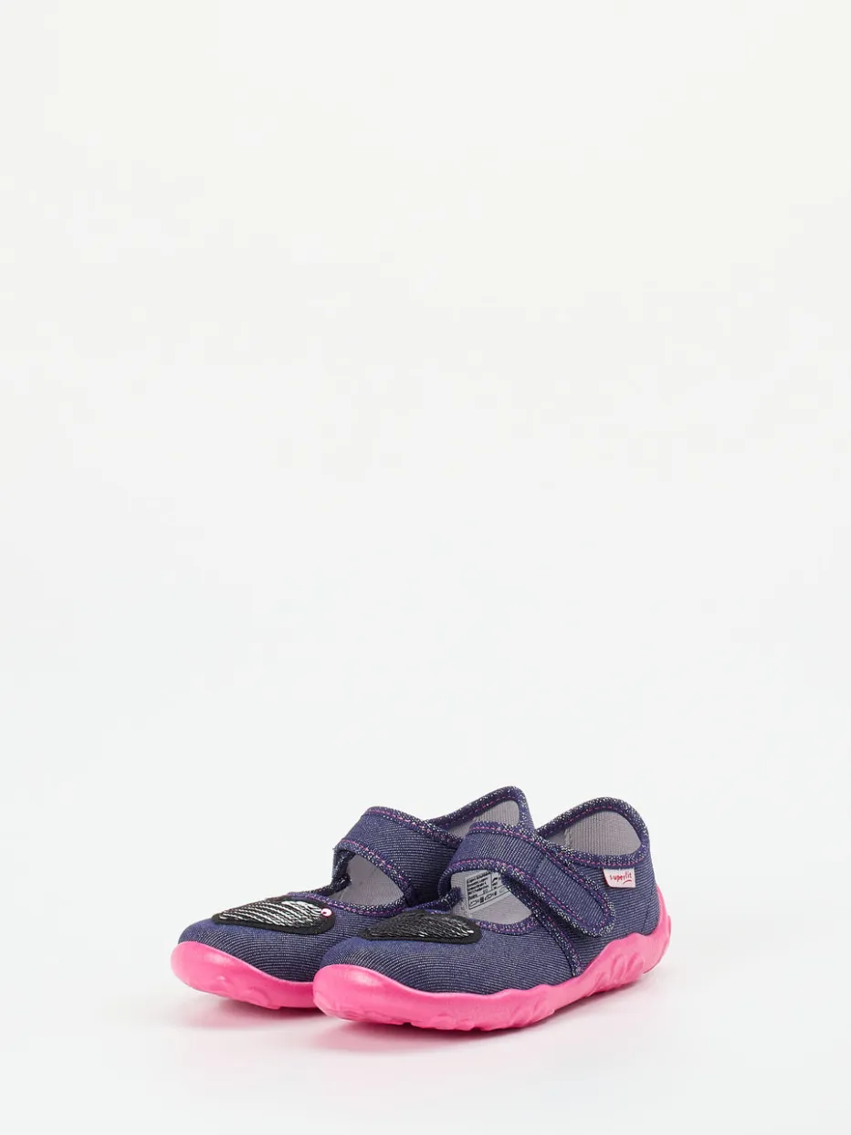 Für kleine Schritte mit großem Stil.Der Kinderhausschuh von Superfit sorgt im Alltag und Zuhause für Komfort und eine Extraportion Glanz. Das weiche Textilmaterial in denimähnlichem Blau präsentiert sich mit matter Oberfläche, akzentuiert durch eine glitzernde Einfassung und ein Paillettenherz auf dem Vorderfuß. Die pinkfarbene PU-Laufsohle mit Blumenprofil ist rutschhemmend und hochgezogen – ideal für sichere Schritte. Ein Klettverschluss erleichtert das eigenständige An- und Ausziehen. Die klassische, runde Form unterstützt den Komfort. Perfekt kombinierbar mit bunten Leggings oder Sweatshirts im Glitzerstil. Verspieltes Design trifft auf bewährte Superfit-Qualität für den Kinderalltag.
