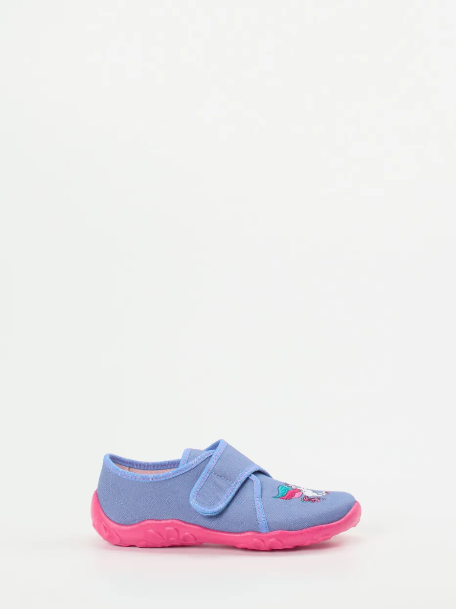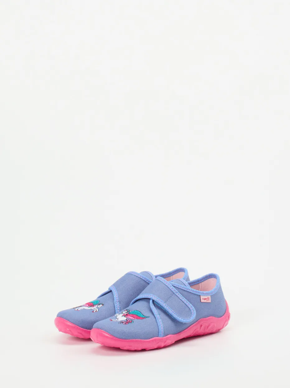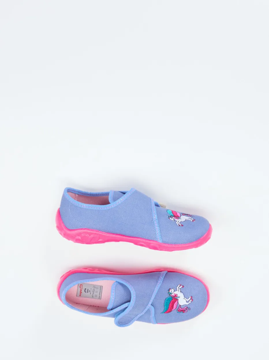 Mit Einhorn-Power durch den Alltag.Der Kinderhausschuh von Superfit überzeugt als leichter Kletthausschuh für drinnen. Weiches Textilmaterial sorgt für ein angenehmes Tragegefühl, während die lavendelblaue Farbgebung und die aufwendig bestickte Einhorn-Applikation auf dem Spann für kindliche Begeisterung sorgen. Der breite Klettverschluss erleichtert das An- und Ausziehen. Die griffige, pinkfarbene Gummisohle mit floraler Prägung schützt kleine Füße zuverlässig und ist dabei angenehm flexibel. Pastellfarbtöne und Kindermotive treffen hier auf funktionalen Komfort – ideal für Freizeit, Zuhause oder Kindertagesstätte. Kombiniert mit passenden Kinderpyjamas entsteht ein verspielter Relax-Look. Superfit bietet hier stilvolle Bequemlichkeit mit liebevollen Details für kleine Abenteurerinnen.