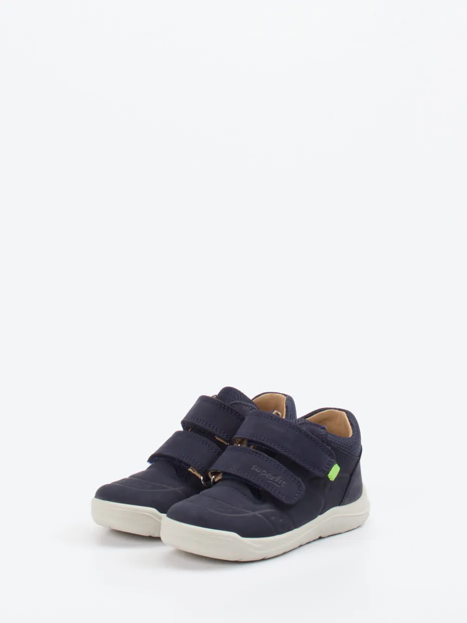 Spielplatzbereit und alltagstauglich.Superfit präsentiert mit diesem Klett-Sneaker ein funktionelles Modell für aktive Kinder. In Spielplatzsituationen oder beim Toben im Alltag überzeugt der Schuh durch seine robuste Kombination aus Nubukleder mit samtigem Finish und luftdurchlässigen Mesh-Einsätzen. Das dominierende Dunkelblau wird durch neongrüne Kontraste aufgefrischt, während die formstabile Silhouette mit gepolstertem Einstieg für optimalen Halt sorgt. Zwei breite Klettverschlüsse bieten kindgerechte Handhabung, das rutschfeste Profil der PU-Sohle unterstützt sichere Bewegungsabläufe. Modisch trifft das Design den aktuellen „Neo-Utility“-Trend. Ein komfortorientierter Begleiter mit durchdachter Funktionalität in markentypisch hochwertiger Verarbeitung.