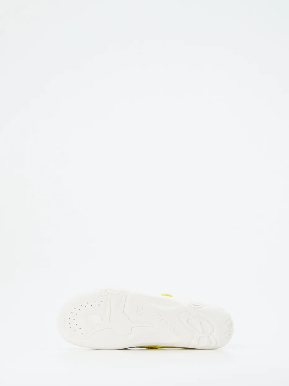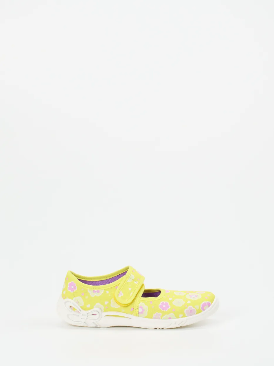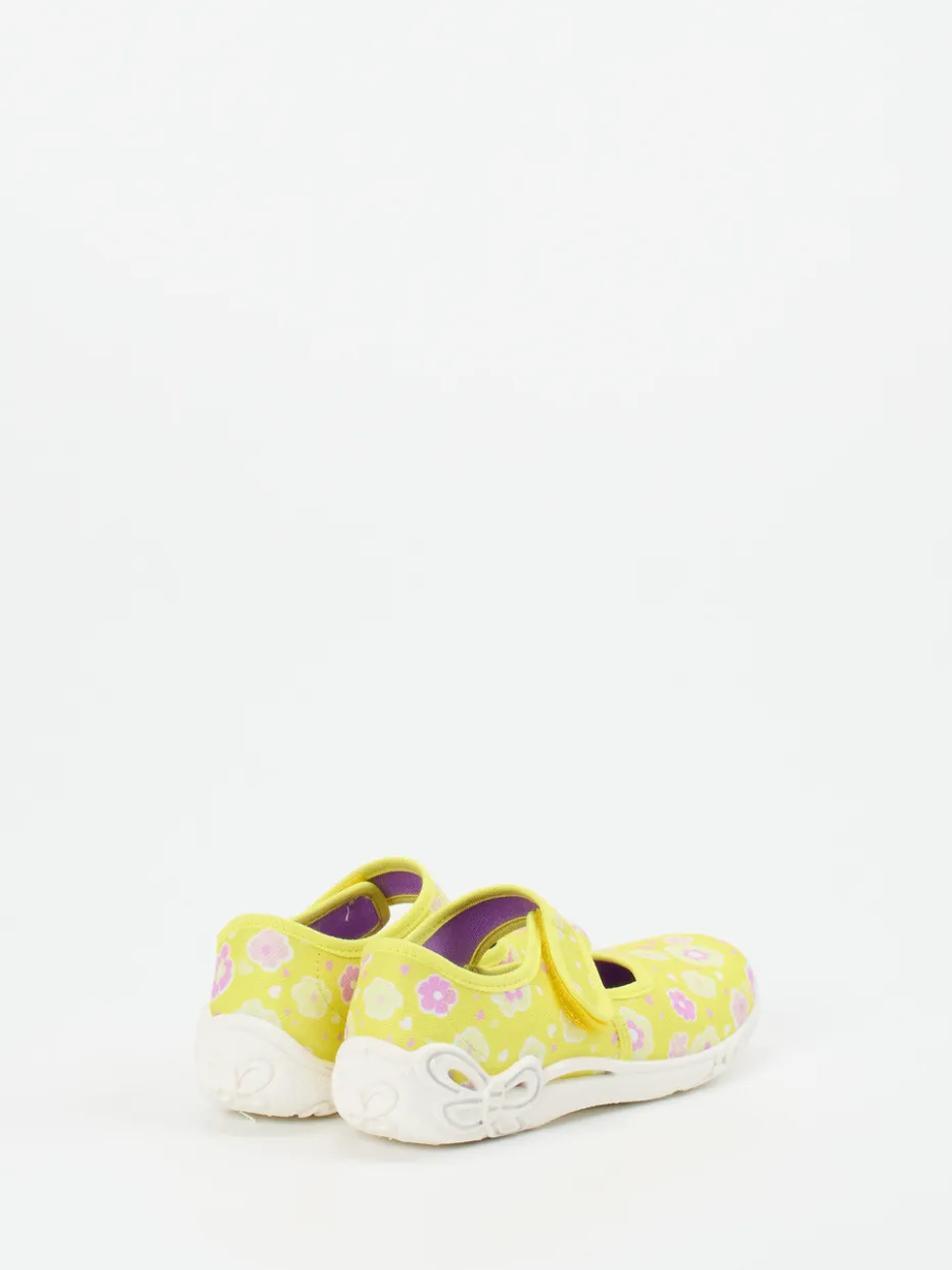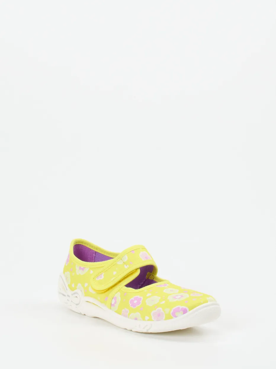 Blumenliebling für kleine Füße.Superfit zeigt mit diesem gelben Kletthausschuh eine liebevoll gestaltete Variante für Kinder. Ob beim Spielen im Wohnzimmer oder beim Herumtollen im Kinderzimmer – das atmungsaktive Textilmaterial mit samtig-matter Oberfläche sorgt für hohen Tragekomfort. Das florale Allover-Muster in Fliederrosa verleiht dem Schuh einen fröhlichen Look, ergänzt durch eine runde Silhouette und den stabilen Klettverschluss. Die flexible Gummisohle bietet mit ihrer Schmetterlingsprägung nicht nur Rutschfestigkeit, sondern auch optische Verspieltheit. Modisch trifft das Modell den Trend zu Pastelltönen und Retroprints. Ein leichter Hausschuh mit kindgerechter Funktionalität – typisch Superfit.