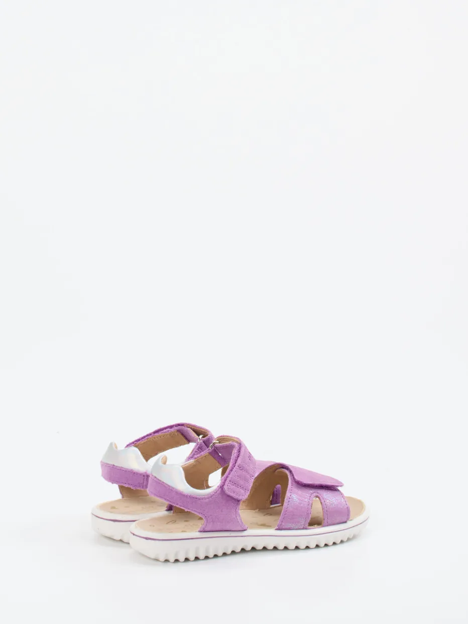 Bequem und kindgerecht: Die ergonomische Klettsandale überzeugt mit schimmerndem Veloursleder, reflektierenden Details und rutschfester Sohle – ideal für aktive Sommertage.