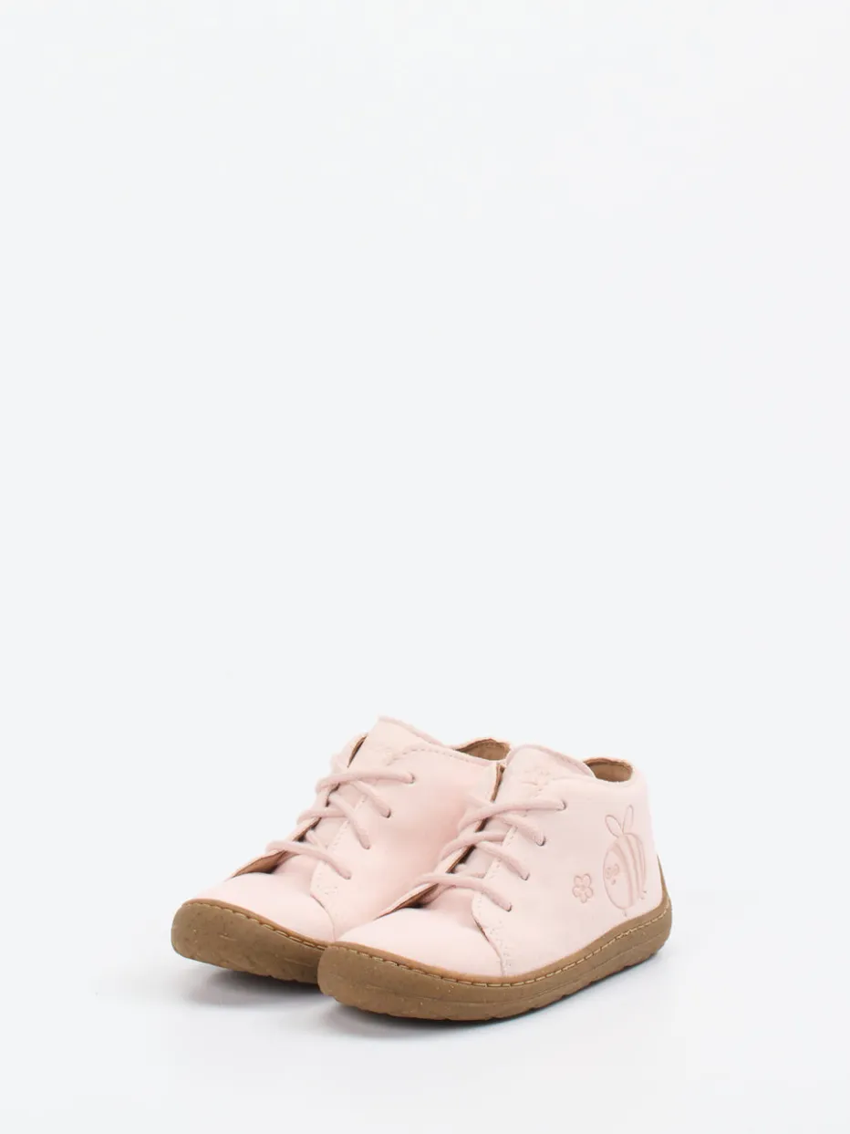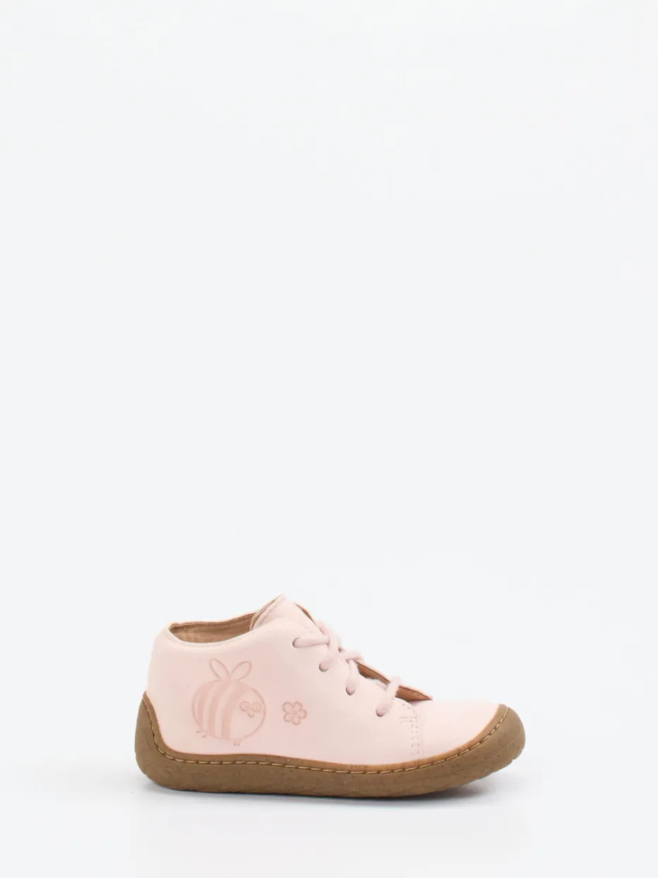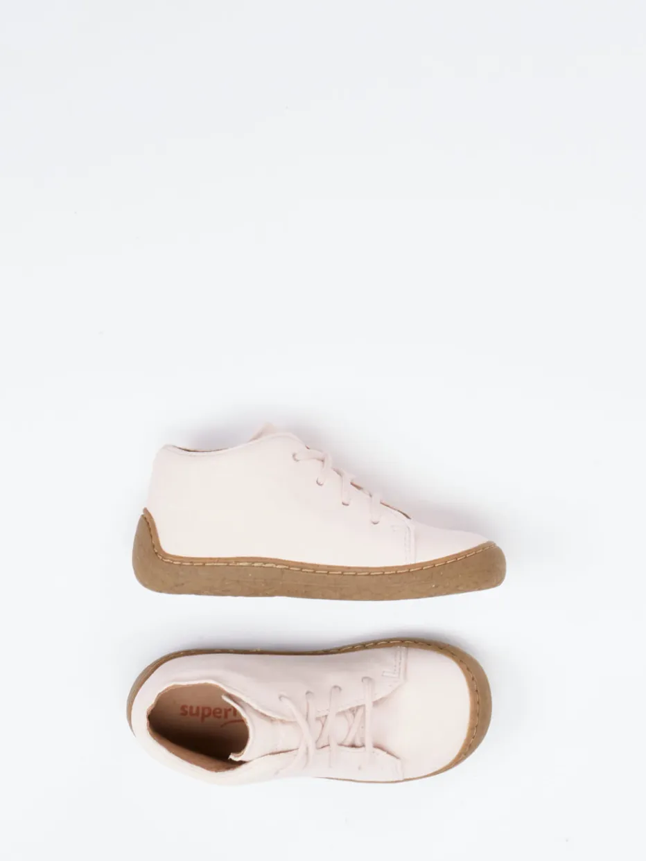 Sicher unterwegs mit stilvoller Leichtigkeit.Der Superfit Lauflernschuh sorgt für entspanntes Entdecken im Alltag. Das hellrosa Veloursleder ist samtig-matt und unterstützt mit seiner weichen Qualität zarte Kinderfüße bei ersten Schritten. Ein geprägtes Bienenmotiv mit zarter Blüte verleiht dem runden, knöchelhohen Schnürschuh seinen verspielten Charakter. Die flexible Naturkautschuksohle mit Korkanteil ist trittsicher und abriebfest. Dank gepolsterter Ferse und auswechselbarem Fußbett bietet der Schuh hohen Tragekomfort. Der skandinavisch inspirierte Look passt ideal zu zarttoniger Kinderkleidung. Superfit vereint funktionale Leichtigkeit mit kindgerechtem Designanspruch.