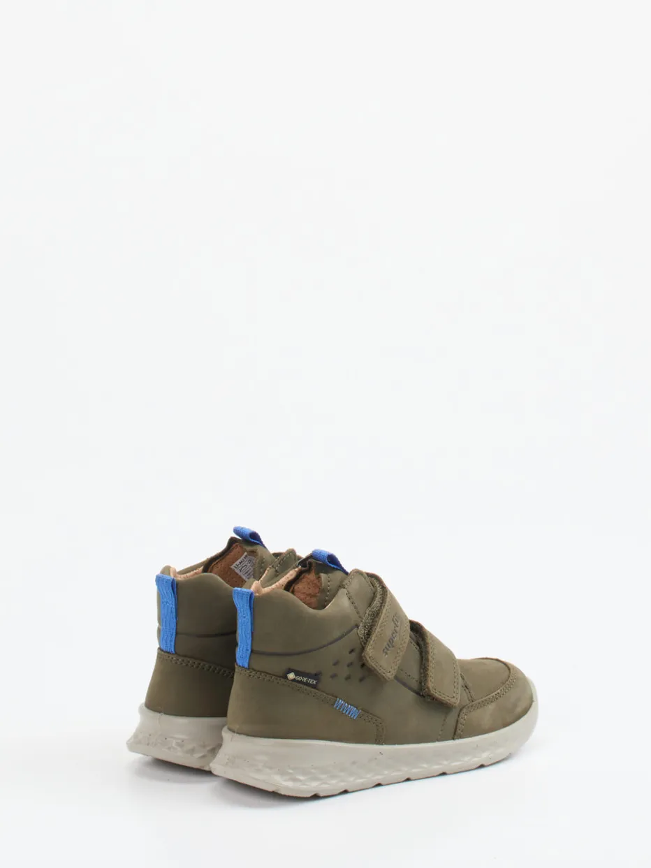 Bereit für Wind und Wetter.Superfit präsentiert einen hochwertigen Mid-Cut Sneaker für Kinder. Ideal für Abenteuer in der Natur oder aktive Tage auf dem Spielplatz: Dieser knöchelhohe Sneaker aus grünem Nubukleder zeigt sich samtig angeschliffen und mit wasserdichter GORE-TEX-Ausstattung. Der doppelte Klettverschluss sorgt für einfaches An- und Ausziehen; blaue Details und Kontrastnähte setzen sportliche Akzente auf der matten Oberfläche. Die rutschfeste PU-Profilsohle unterstützt sicheres Laufen bei jedem Wetter. Inspiriert von aktuellen Streetwear- und Outdoor-Trends passt er perfekt zu wetterfester Kinderkleidung. Komfort und Schutz vereint – für kindgerechte Mobilität bei jedem Wetter.
