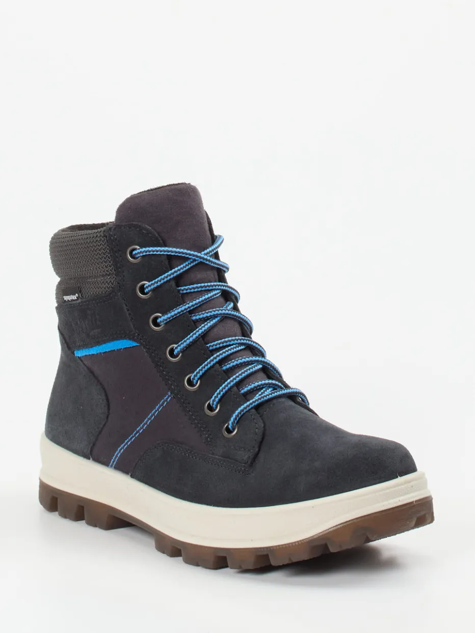 Perfekt für kleine Entdecker.Superfit präsentiert mit diesen Outdoor-Boots ein Modell für aktive Kinder. Ob auf dem Schulweg oder bei Abenteuern im Wald – das wasserabweisende Veloursleder mit matter Oberfläche bietet Schutz und Widerstandsfähigkeit. Die graue Farbgebung wird durch kobaltblaue Kontrastnähte und zweifarbige Schnürsenkel aufgelockert. Ein seitlicher Reißverschluss sorgt für einfaches An- und Ausziehen, während der gepolsterte Schaft und die PU-Profilsohle sicheren Halt garantieren. Inspiriert von Gorpcore und Utility-Trends eignet sich der Schuh für Freizeit und Outdoor gleichermaßen. Kombiniert mit einer Thermojacke entsteht ein runder Look für kalte Tage. Halt, Schutz und Komfort: kindgerecht umgesetzt von Superfit.