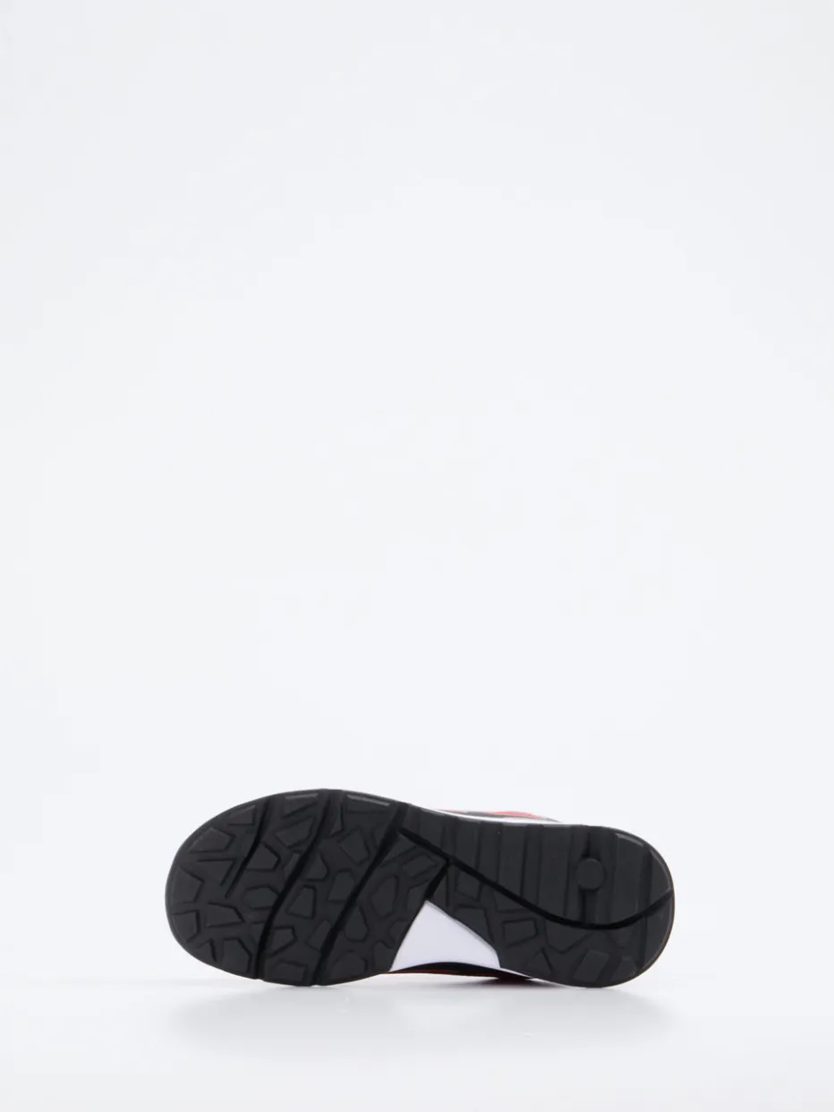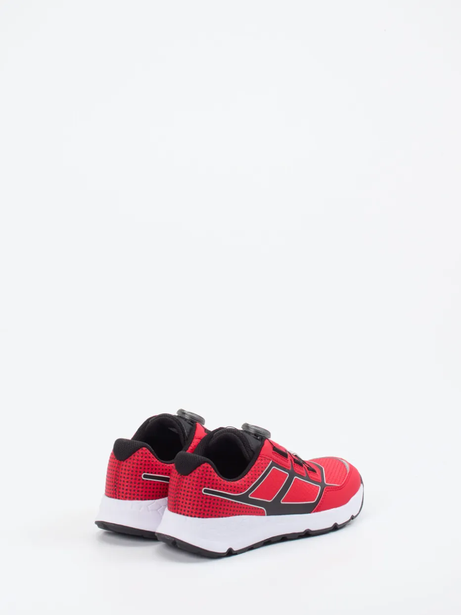 Ideal für Spielplatz, Schulhof oder Sportkurs: Das atmungsaktive Textilmaterial mit leicht matter Mesh-Struktur sorgt für ein angenehmes Tragegefühl. Die griffige Gummisohle bietet sicheren Halt, während reflektierende Elemente für zusätzliche Sichtbarkeit sorgen. Die sportlich-klassische Silhouette in leuchtendem Signalrot wird durch schwarze und weiße Kontraste akzentuiert. Ein BOA-Drehverschluss ermöglicht einfaches, kindgerechtes An- und Ausziehen. Das Modell verbindet Performance-Charakter mit angesagter Streetwear-Optik.