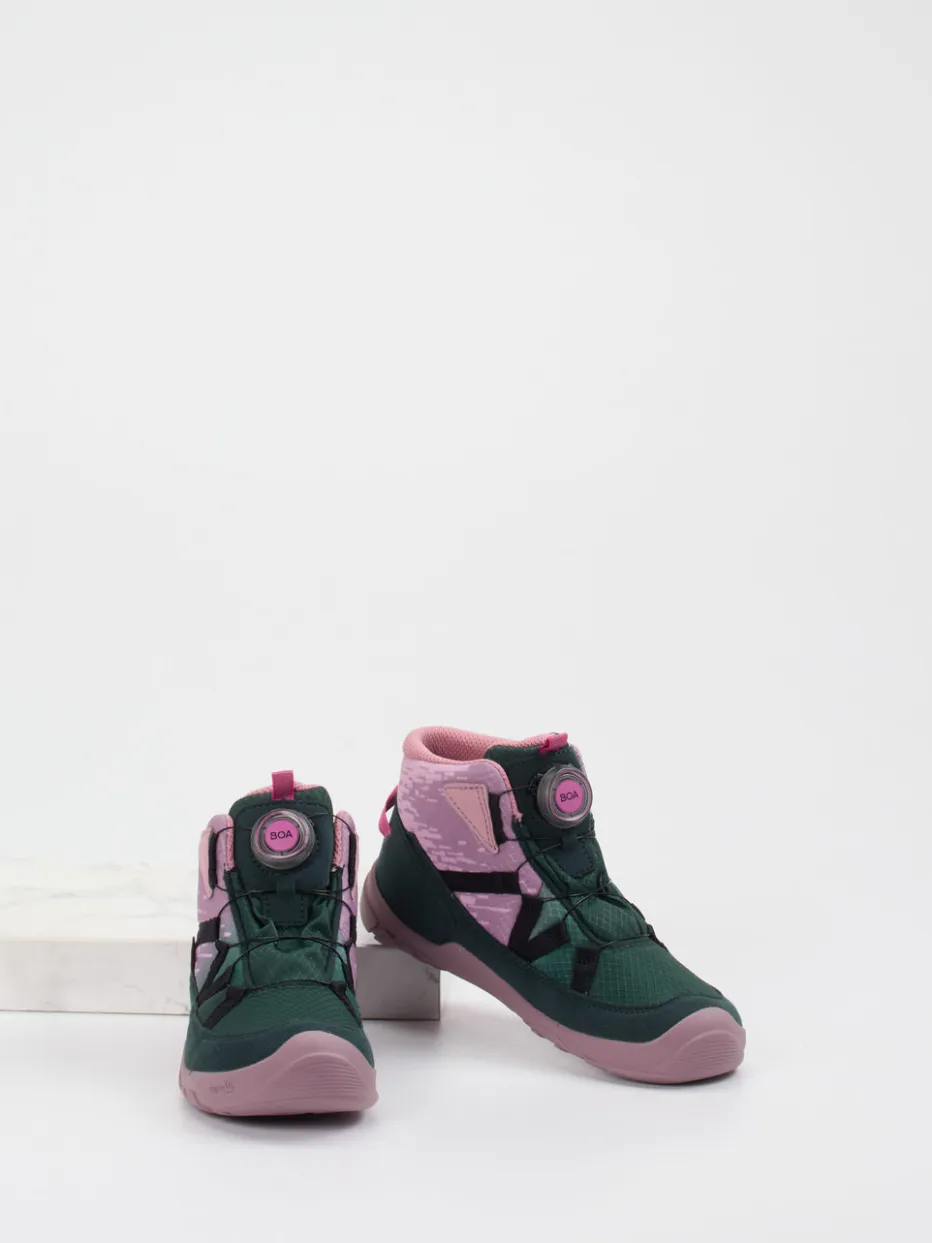Bereit für jedes Outdoor-Abenteuer.Superfit bietet mit diesem Wanderschuh für Kinder eine sportlich-funktionale Lösung für aktive Tage. Ob beim Wanderausflug mit der Familie oder auf dem Weg zur Schule – das robuste Textil mit matter Oberfläche und digital gemustertem Colorblocking in Tannengrün, Altrosa und Pink sorgt für Langlebigkeit und markante Optik. Das BOA-Drehverschlusssystem erleichtert das An- und Ausziehen erheblich. Die farblich abgesetzten Zuglaschen und die profilierte Gummisohle mit pinken Details ergänzen das sportliche Design. Inspirieren lässt sich das Modell von Gorpcore und Techwear-Trends. Ein durchdachter Begleiter für junge Entdecker mit Anspruch an Komfort und Stil.