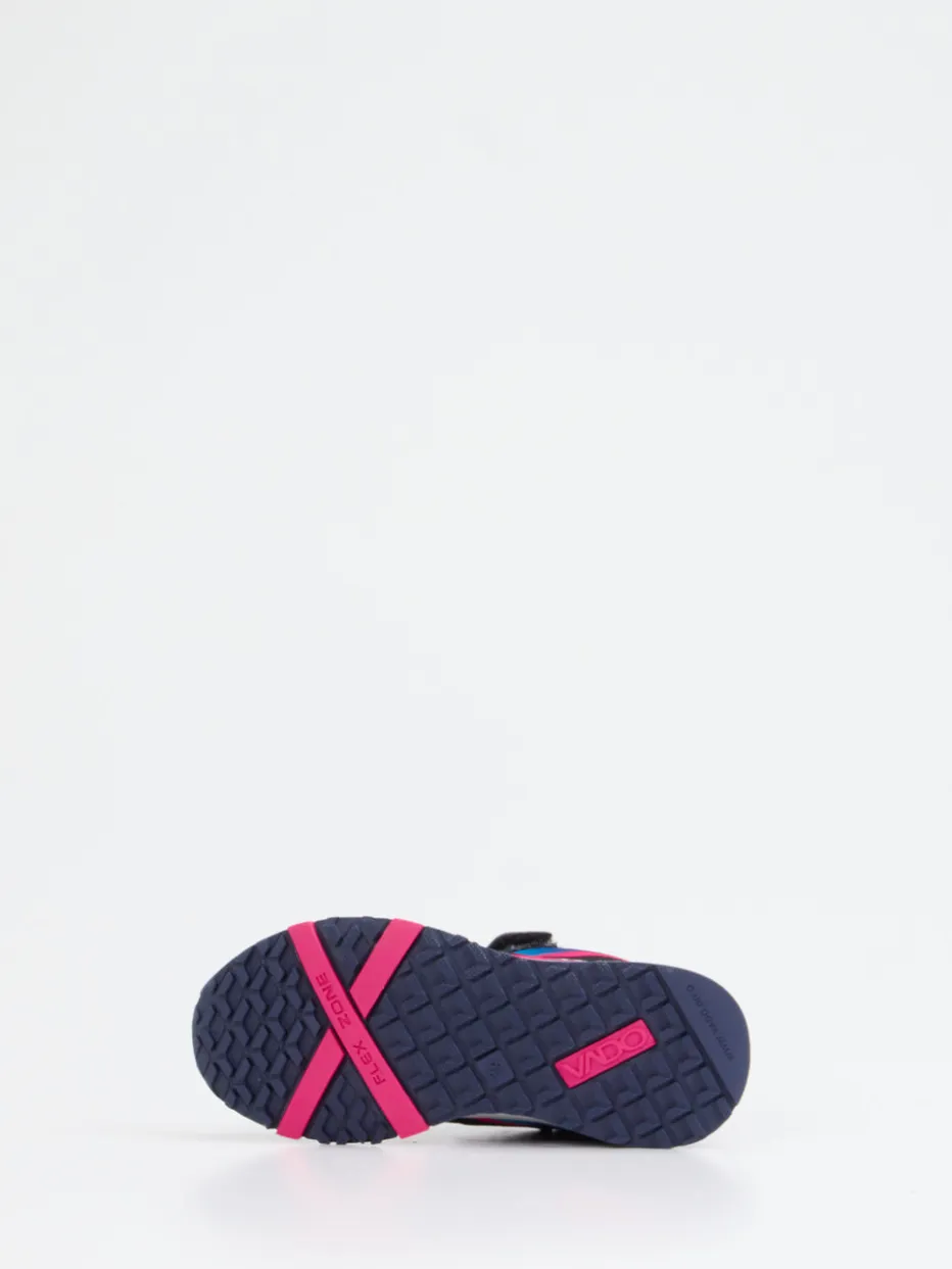 Kinderschuh mit Abenteuerpotenzial.Der Outdoor-Sneaker von Vado richtet sich an aktive Kinder mit großem Bewegungsdrang. Mit seinem matten Textilmaterial und dem abgestuften Farbverlauf in Dunkelblau, Pink und Türkisblau bietet er optisch und funktional einen gelungenen Auftritt. Die sportlich-kompakte Form, ein stabiler Klettverschluss und die reflektierende Fersenkappe sorgen für sicheren Halt und gute Sichtbarkeit. Die griffige Gummisohle mit integrierter Flex-Zone unterstützt natürliche Bewegungen – ideal für Freizeit und unebenes Terrain. Trendaffin durch Color-Blocking und Athleisure-Einflüsse, passt er perfekt zur Funktionsjacke. Vado kombiniert moderne Gestaltung mit praktischer Alltagstauglichkeit für Kinderfüße.