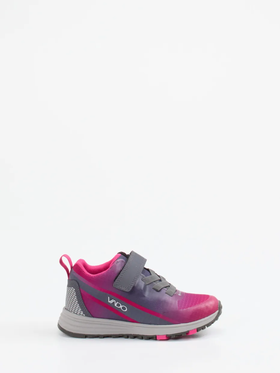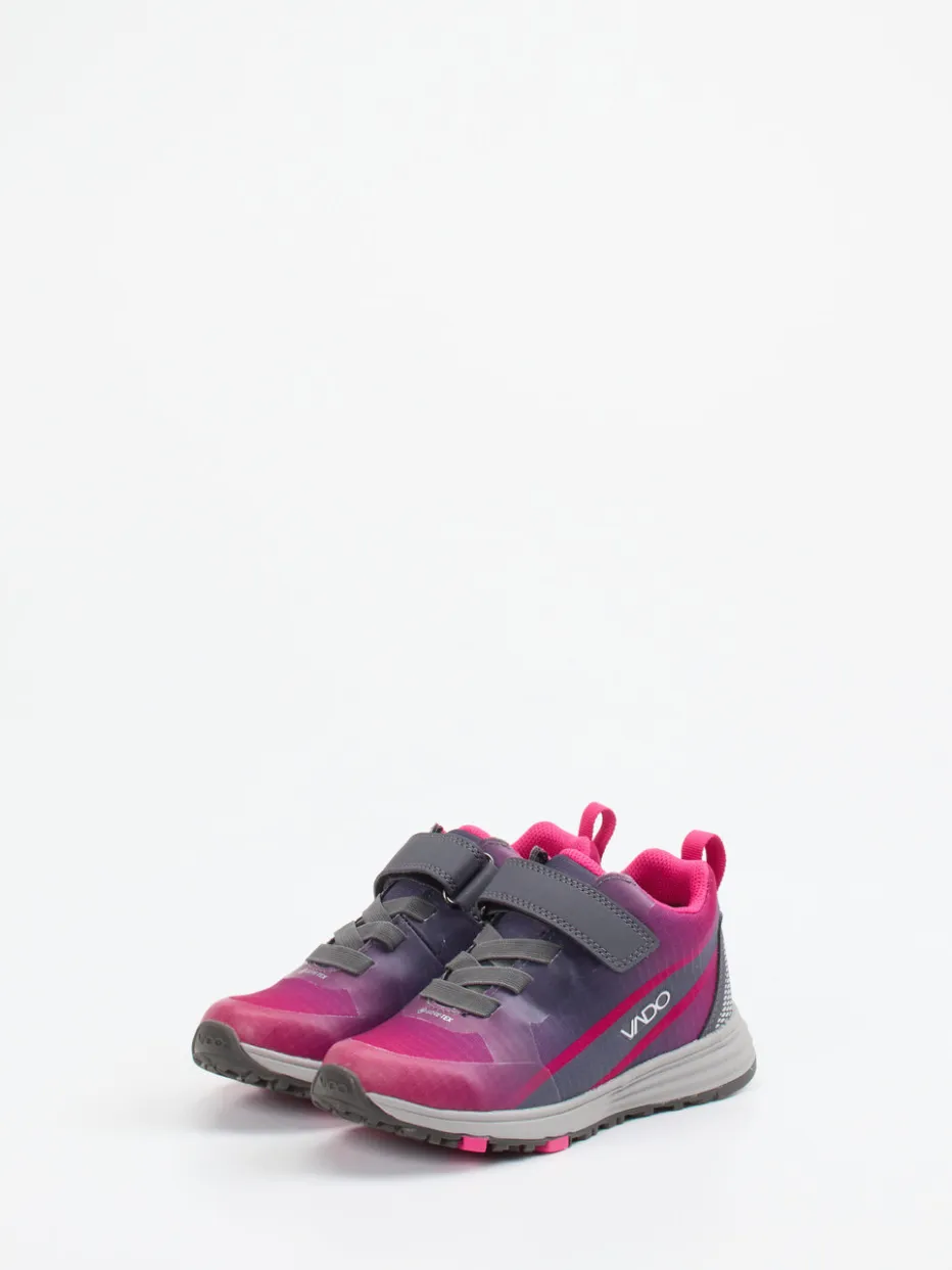 Bereit für jedes Wetter.Der Outdoor-Sneaker von Vado für Kinder überzeugt mit cleverer Funktion und sportlichem Look. Ideal für aktive Tage zwischen Spielplatz, Schulweg und Waldpfad: Das leichte Textilmaterial mit matter Oberfläche wird durch eine GORE-TEX-Membran ergänzt, die zuverlässig vor Nässe schützt. Der Farbverlauf von Pinkfuchsia zu Grau in Kombination mit reflektierenden Elementen sorgt für hohe Sichtbarkeit bei Dämmerung. Ein Mix aus Klettverschluss und Elastiksenkeln erleichtert das An- und Ausziehen. Unterstützt durch eine rutschfeste Gummisohle mit Flex-Zonen steht Bewegungsfreiheit im Fokus. Setzt ein Signal im Streetwear-Stil. Technik trifft Komfort – entwickelt für Abenteuer mit Anspruch.