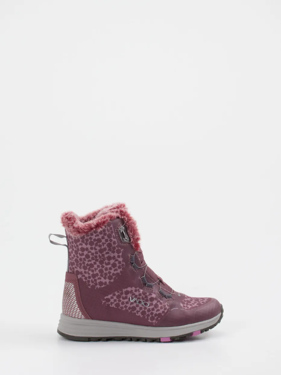 Für Wintertage mit Abenteuerpotenzial.Die Marke Vado präsentiert robuste Kinder-Winterboots für aktive Tage im Freien. Wenn Spielplatz, Schulweg oder Schneespaziergang wetterfestes Schuhwerk erfordern, bietet dieses Modell zuverlässige Performance: Das beerenrote Obermaterial aus Textil zeigt sich matt strukturiert mit angesagtem Animalprint, ergänzt durch weiches Kunstfellfutter. Ein innovatives BOA-Drehverschluss-System erleichtert das An- und Ausziehen, während eine profilierte Gummisohle sicheren Halt auf glatten Untergründen gewährleistet. Reflektierende Details verbessern die Sichtbarkeit bei schlechtem Licht. Die Silhouette in Knöchelhöhe ist für Komfort und Bewegungsfreiheit optimiert – ideal kombiniert mit Thermohose oder Outdoorjacke. Funktionaler Schutz trifft stylisches Design – Vado setzt Maßstäbe für moderne Kinderschuhe.