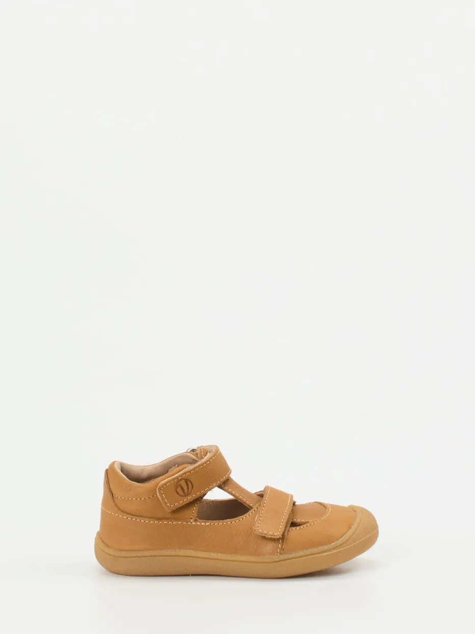 Stilvoller Schutz für kleine Füße.Vadolino präsentiert mit dieser geschlossenen Kinder-Sandale ein Modell für den aktiven Alltag. Die honigbraune Sandale aus robustem, samtig angeschliffenem Nubukleder punktet mit einem funktionalen Design: Cut-Outs an den Seiten sorgen für Belüftung, während die rutschhemmende Gummisohle mit Krabbelschutz auf unterschiedlichsten Untergründen sicheres Laufen ermöglicht. Zwei praktische Klettverschlüsse erleichtern das An- und Ausziehen und bieten optimale Passform. Der natürliche Farbton und die schlichte, runde Silhouette fügen sich ideal in den skandinavisch inspirierten Quiet-Luxury-Stil der Saison ein – besonders gut kombinierbar mit Naturtönen. Bequemer Tragekomfort gepaart mit kindgerechter Alltagstauglichkeit – typisch Vadolino.