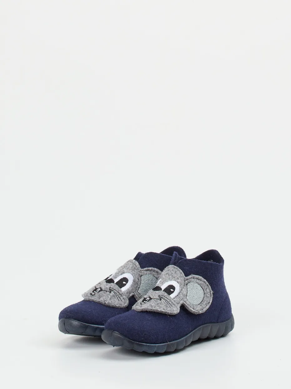 Freche Maus trifft Funktionalität.Superfit präsentiert einen liebevoll gestalteten Kinderhausschuh für den Alltag und entspannte Stunden daheim. Ideal für Kita oder Zuhause bietet die knöchelhohe Form Halt bei maximaler Bewegungsfreiheit. Gefertigt aus dunkelblauer Wolle mit filziger Oberfläche überzeugt das Modell durch warme Textilfütterung und kindgerechtes Design. Die Maus-Applikation aus Stickerei und Stoff ist Blickfang und Verschluss zugleich – der Klettverschluss erleichtert das An- und Ausziehen. Die profilierte PU-Sohle unterstützt sicheres Abrollen auf rutschigen Böden. Inspiriert vom Trendthema Animal Motifs Kids AW24, lädt das Storytelling-Design zum Träumen ein. Ein durchdachtes Superfit-Modell mit alltagstauglichem Komfort und spielerischer Note.