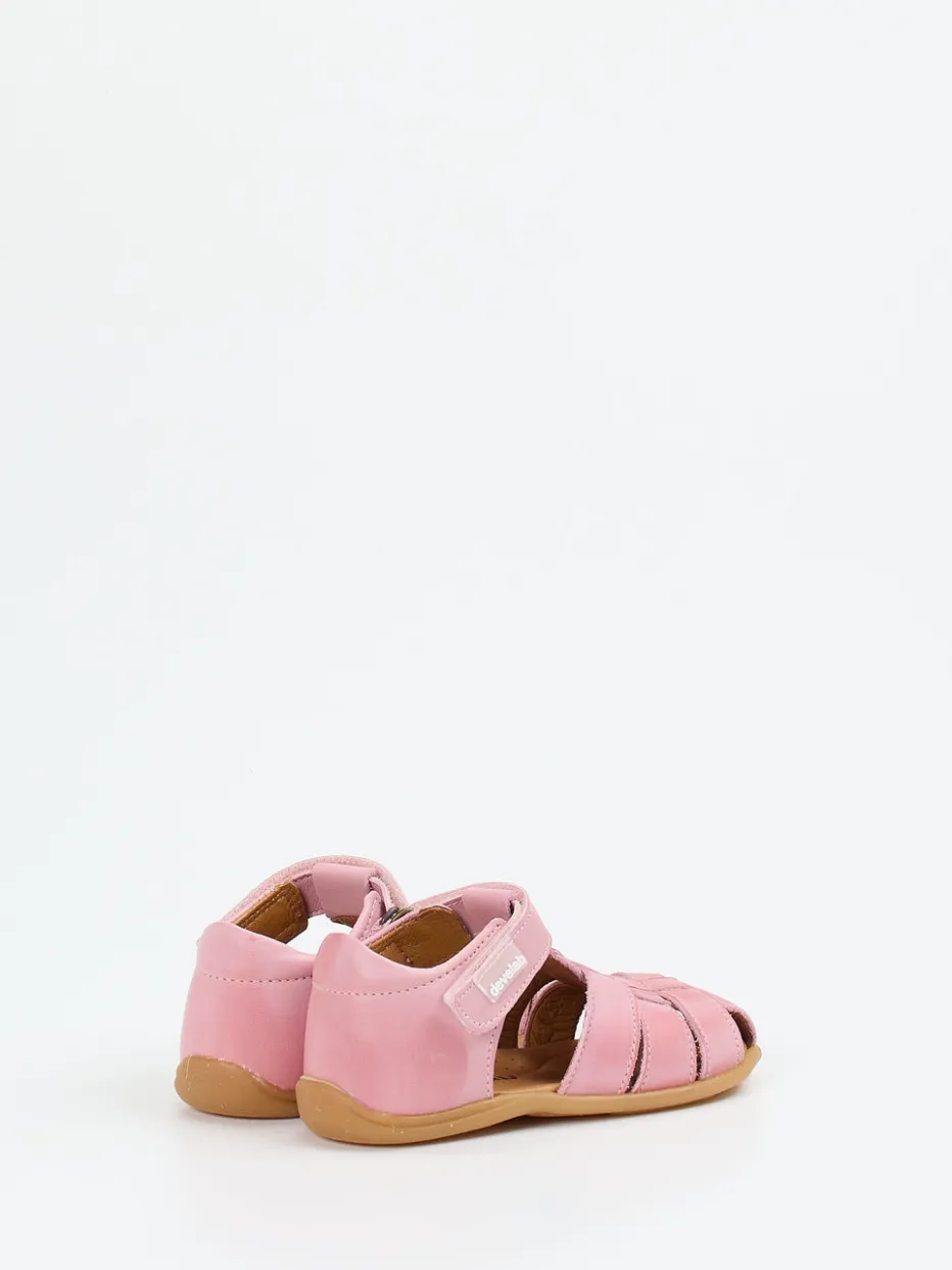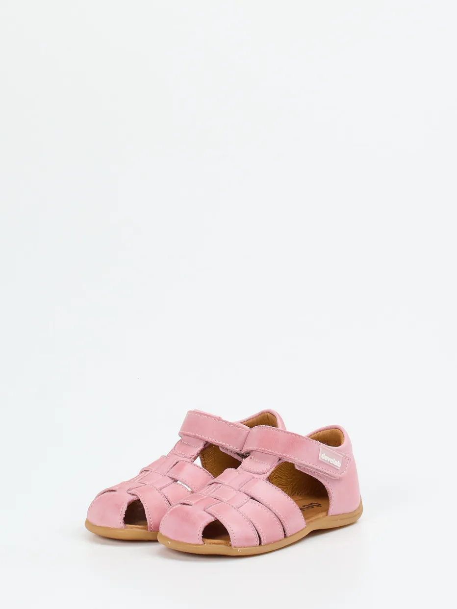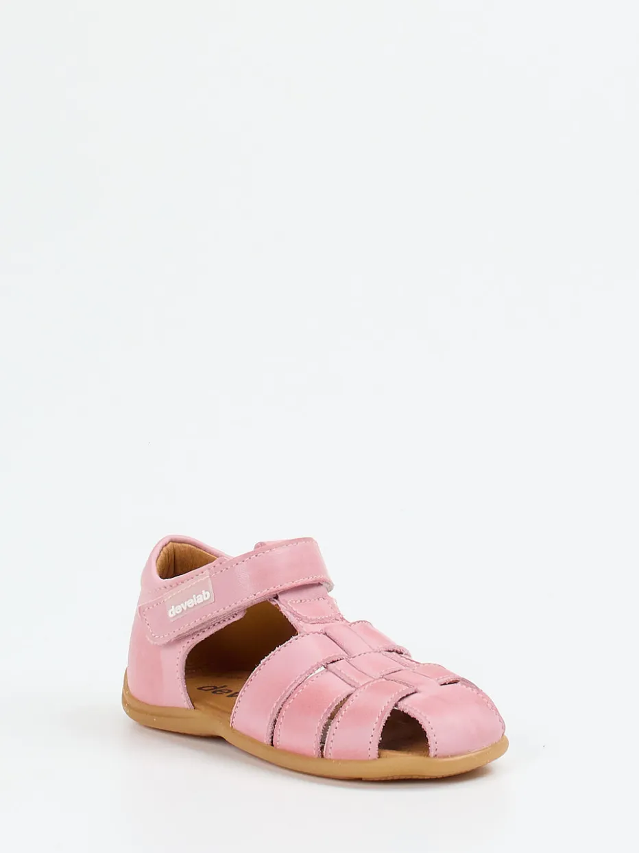 Weich, sicher und stilvoll unterwegs.Die Marke develab präsentiert eine modische Kindersandale im geschlossenen Fischermodell. Für erste Erkundungstouren im Sommer bietet diese Mädchensandale aus samtigem, altrosa Kalbleder sicheren Halt. Die geschlossene Ferse und das anatomisch geformte Lederfußbett sorgen in Kombination mit der weich gepolsterten Innensohle für viel Komfort. Der praktische Klettverschluss ermöglicht ein schnelles An- und Ausziehen und lässt sich passgenau justieren. Die flexible, rutschfeste Gummisohle sowie das reduzierte, skandinavisch inspirierte Design runden das Modell funktional und optisch ab. Sanfte Pastelltöne machen es zum Favoriten in der Sommergarderobe. Ein kindgerechter Sommerschuh mit bewährtem Develab-Komfort.