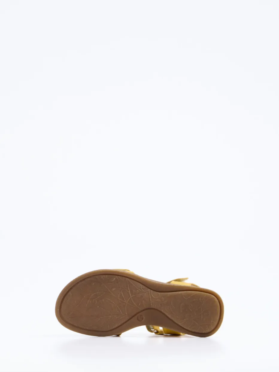 Die Marke Froddo präsentiert eine frische Kindersandale aus weichem Kalbleder. Ideal für warme Tage auf dem Spielplatz oder im Urlaub – dank bequemer Polsterung und kinderleichtem Klettverschluss bleibt jeder Schritt entspannt. Die sonnengelbe Farbgebung trifft auf olivgrüne und altrosafarbene Akzente, gebündelt durch einen verspielten T-Riemen. Florale Applikationen und ein glänzender Fersenriemen in Roségold betonen die detailverliebte Gestaltung. Die flexible Gummisohle bietet Trittsicherheit und macht sie zum idealen Begleiter für sommerliche Abenteuer.
