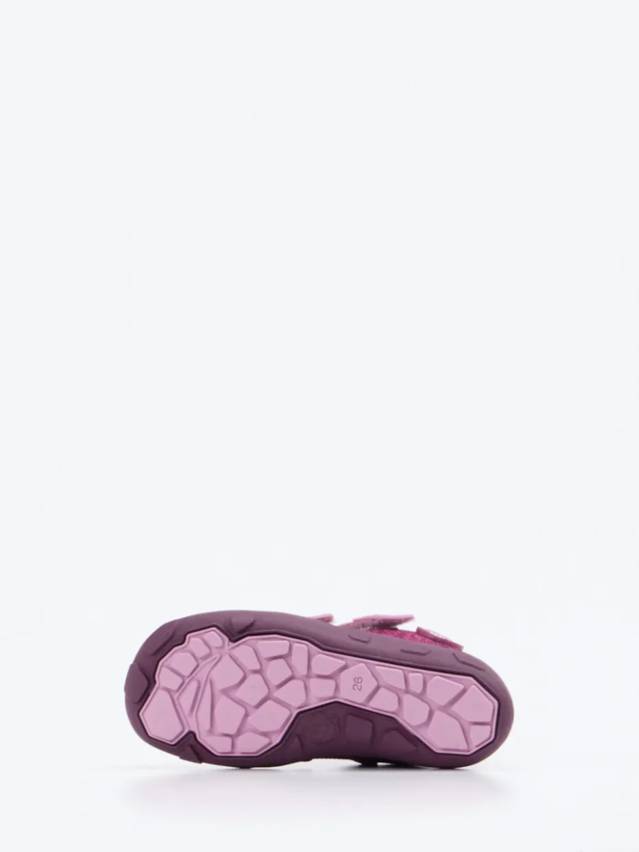 Für kleine Abenteurer gemacht.Affenzahn präsentiert einen sportiven Kindersneaker mit praktischem Klettverschluss-System. Ob für Kita, Spielplatz oder Waldspaziergang – der Sneaker bietet sicheren Halt und hohen Komfort. Das gestrickte Textil-Obermaterial kombiniert Strapazierfähigkeit mit atmungsaktiver Struktur. In kräftigem Beerenviolett mit hellrosa Akzenten gehalten, punktet das Modell durch seine rund-kompakte Form, Ton-in-Ton Markenprägung auf den Klettverschlüssen sowie Zuglaschen an Ferse und Zunge. Die profilierte Gummisohle gibt festen Tritt auf unterschiedlichsten Untergründen. Streetwear-Einflüsse und ein Color-Blocking Look machen ihn zudem zum modischen Highlight. Typisch Affenzahn: durchdachte Details für kindgerechte Bewegungsfreiheit.