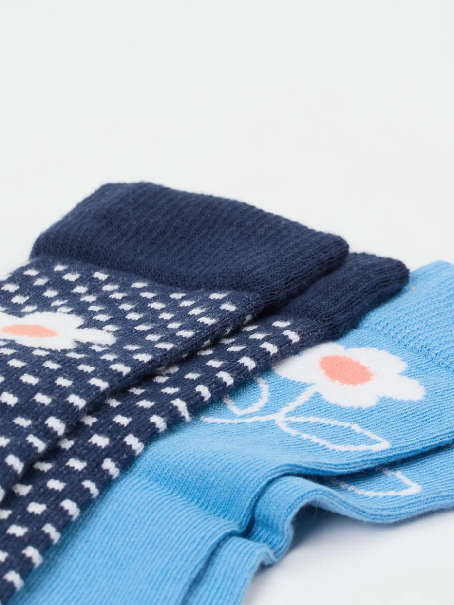 Für aktive Tage zu Hause oder unterwegs bieten die Socken hohen Komfort dank elastischem Bund und weicher Strickstruktur. Der Materialmix auf Textilbasis wird durch eine fein gestrickte Oberfläche ergänzt, die angenehm auf der Haut liegt. Farblich dominiert ein dunkelblauer Ton, aufgefrischt durch florale Intarsien in Hellblau und Weiß – inspiriert vom skandinavischen Retro-Design. Die klassische Röhrenform sorgt für eine gute Passform, verstärkte Zehenpartien unterstützen die Langlebigkeit. Stilistisch passen sie ideal zu Baumwollleggings oder Sneakers.