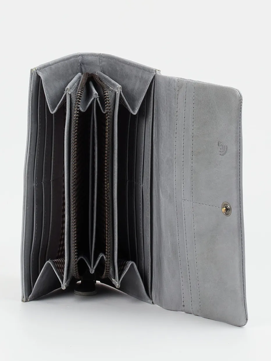 Die Marke Jack Kinsky präsentiert dieses Portemonnaie aus der Serie Nassau in einem tollen Farbton! Das hochwertige, steingraue Kalbleder überzeugt durch die modische Struktur in angesagter Vintage-Optik. Karten, Bargeld und Belege können dank der großzügigen Aufteilung sicher und praktisch verstaut werden. Das eingravierte Markenemblem ziert unverkennbar. Für den Schutz Ihrer persönlichen Daten verfügt diese Geldbörse zusätzlich über einen zuverlässigen RFID-Blocker. – Material: Kalbleder – Farbe: grau – Größe: ca. 12 x 19 x 4 cm (H x B x T) – Innen: 18 Kartenfächer, zwei Geldscheinfächer, zwei Belegfächer, ein zweigeteiltes Münzfach mit einem innenliegendem Fach sowie Reißverschluss – Verschluss: Druckknopf