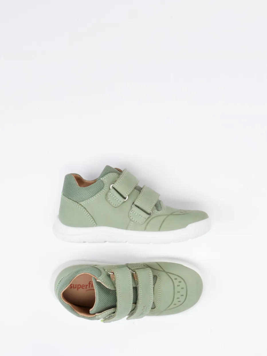 Für kleine Schritte mit Stil.Superfit präsentiert mit diesem Lauflernschuh einen komfortablen Klett-Sneaker für Kinder. Im Alltag voller Entdeckungen bietet der Schuh mit weichem Nubukleder und samtig angeschliffener Haptik echten Spielkomfort. Die salbeigrüne Oberfläche kombiniert sich harmonisch mit tonigem Mesh und einem gepolsterten Einstieg. Zwei praktische Klettverschlüsse ermöglichen kinderleichtes Anziehen, während die profilierte PU-Sohle mit Flexzonen optimal auf Laufanfänger abgestimmt ist. Dezentes Branding und eine minimalistische Silhouette fügen sich perfekt in den Soft Utility-Trend ein. Ideal zu funktionalen Kinderjacken oder sportlichen Leggings. Natürlicher Laufkomfort trifft auf durchdachtes Superfit-Design.