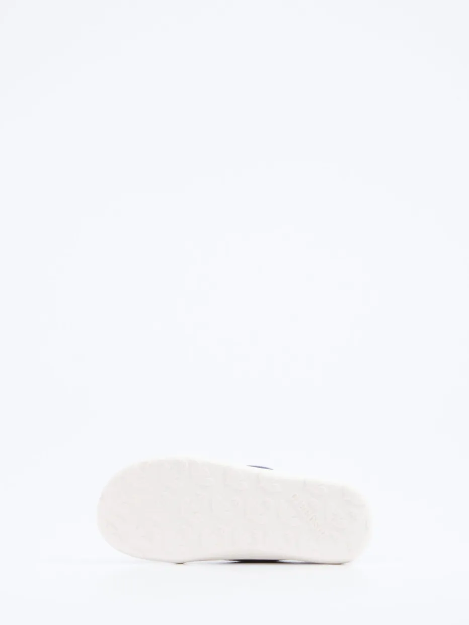 Ob in der Kita oder im Kinderzimmer – das jeansblaue Modell mit mattierter Oberfläche und Allover-Logomuster bietet sicheren Komfort für aktive Füße. Die flexible Gummisohle ist rutschhemmend profiliert. Ein gepolsterter Einstieg sowie der doppelte Klettverschluss erleichtern das An- und Ausziehen. Ton-in-Ton-Nähte und Logo-Prägungen unterstreichen den cleanen Look. Ideal kombinierbar mit Sweatjacke und Jeans für einen entspannten Stil.