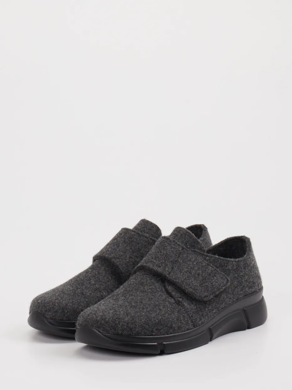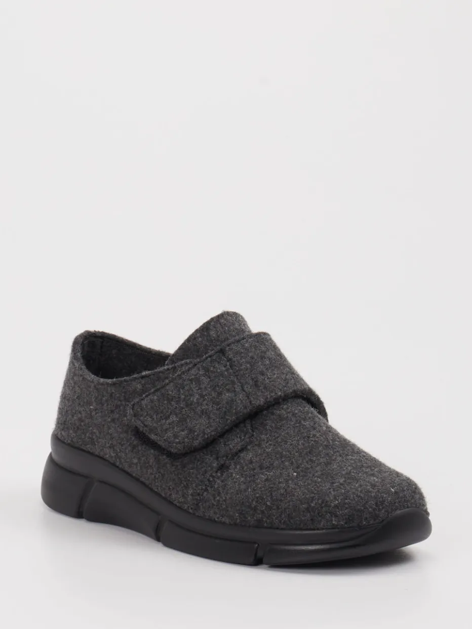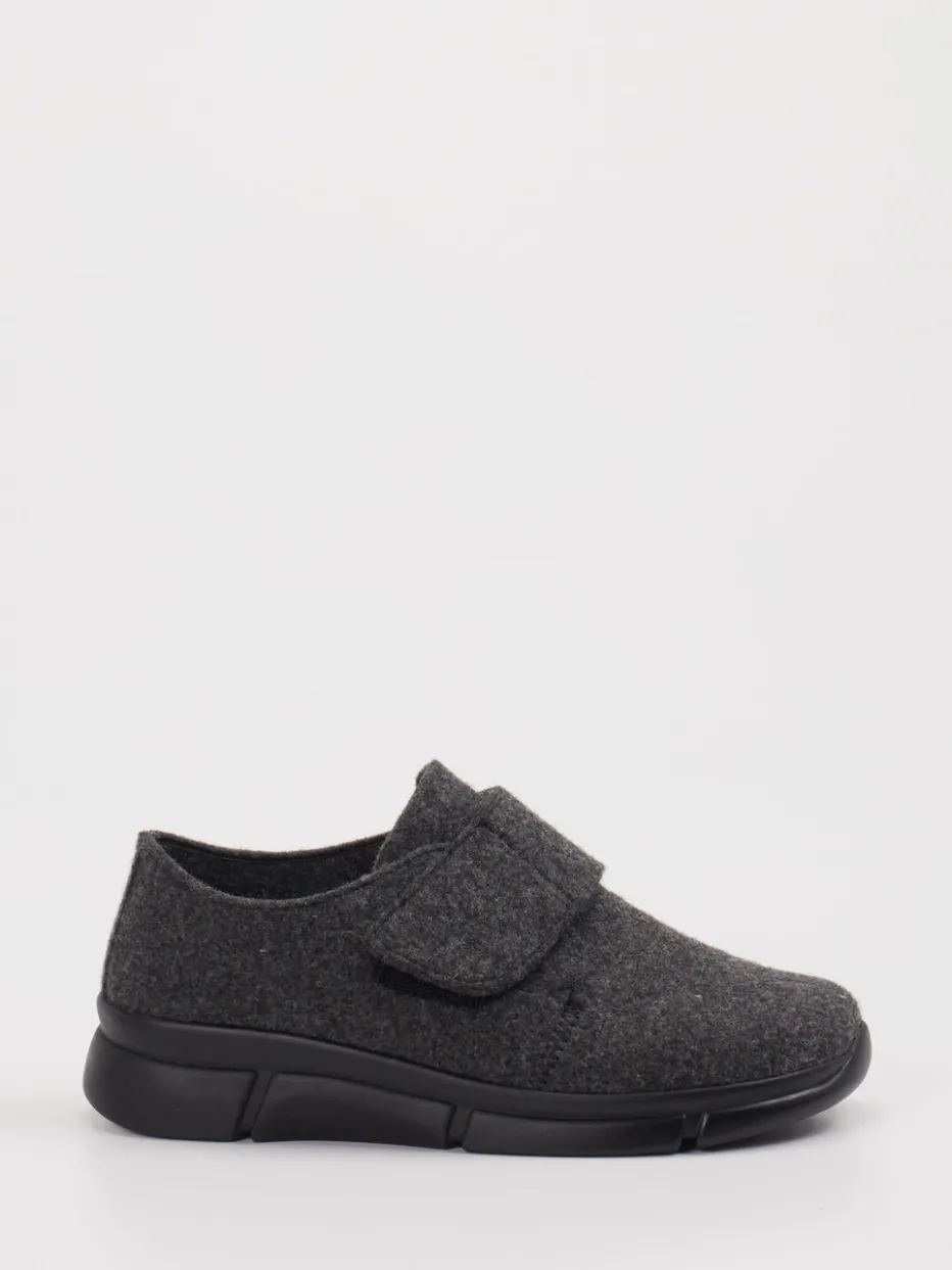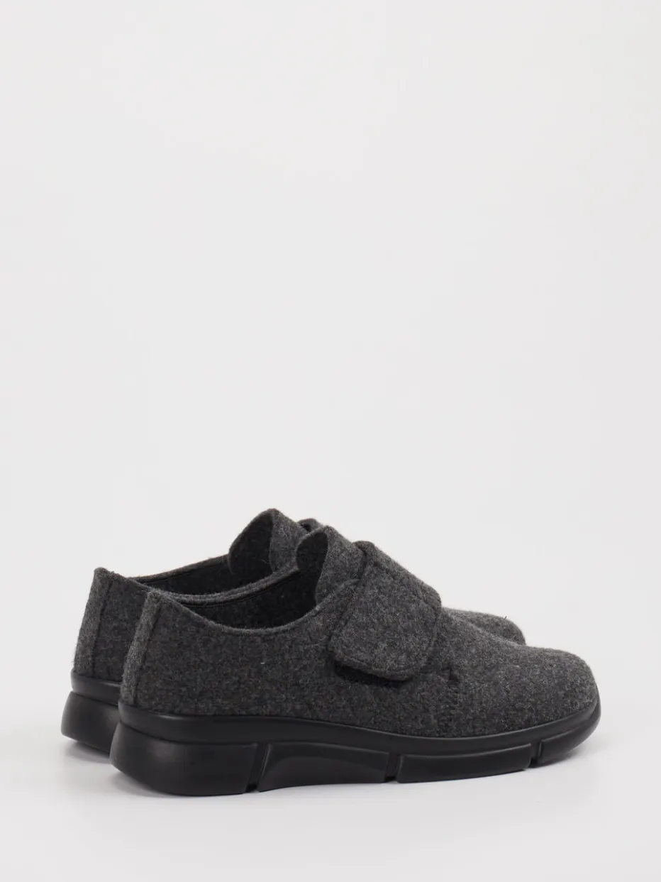 Komfortabel durchdacht: Der Klettslipper aus weichem Filz bietet dank ergonomischer Gummisohle sicheren Halt und angenehmes Tragegefühl – ideal für entspannte Stunden daheim.