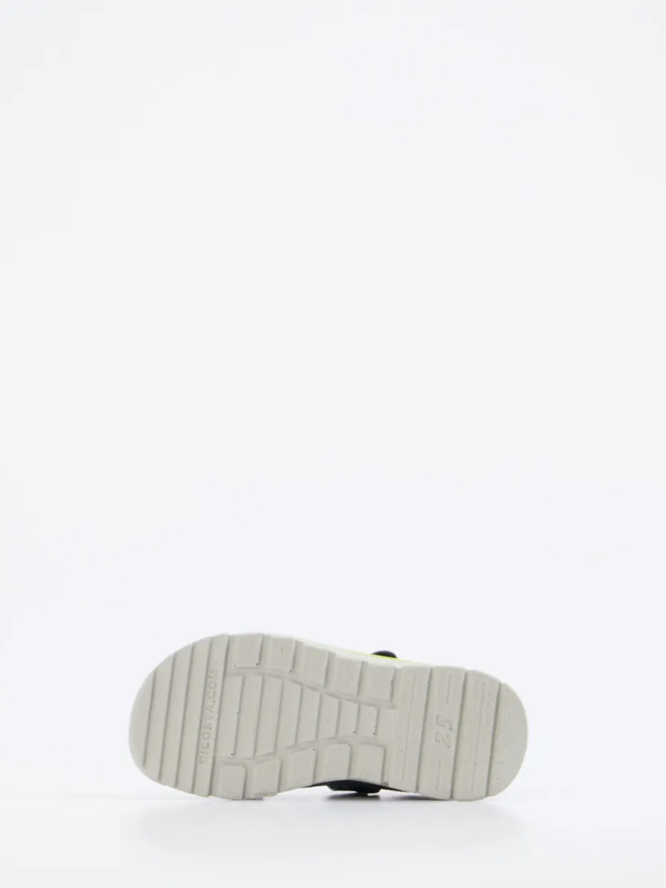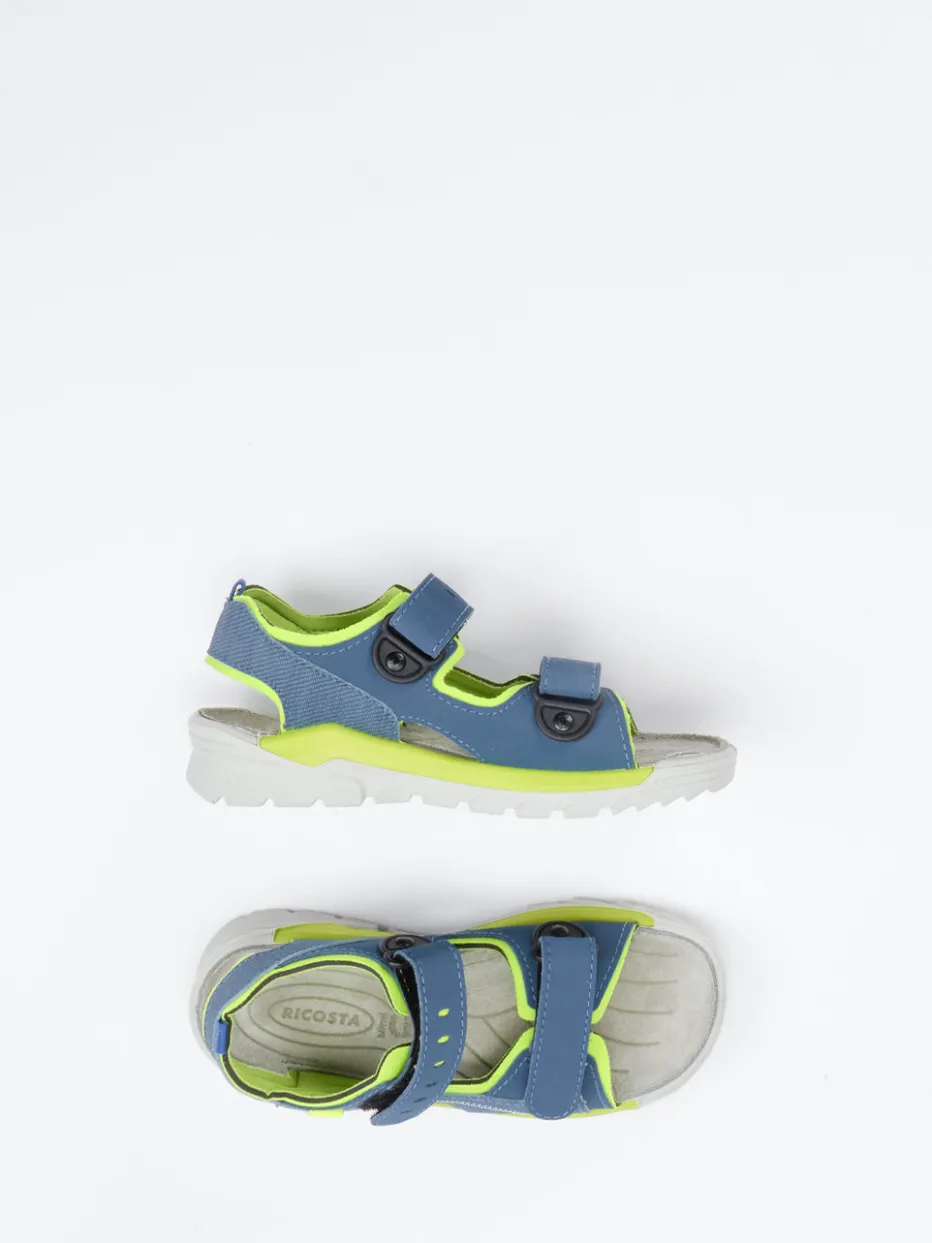 Bereit für jeden Sommertag.Ricosta präsentiert eine funktionale Kindersandale der Kategorie Klettsandale. Perfekt für Spielplatz, Waldweg oder Garten: Das synthetische Obermaterial mit matter Oberfläche ist pflegeleicht und strapazierfähig. In Dunkelblau mit neonfarbenen Akzenten gestaltet, bringt das Modell einen sportiven Look ins Outfit. Zwei farblich abgesetzte Klettverschlüsse sorgen für sicheren Halt, dazu bietet die gepolsterte Innensohle hohen Tragekomfort. Die profilierte PU-Sohle mit tiefen Rillen unterstützt Trittsicherheit auf vielfältigem Untergrund. Inspiriert von Sport- und Outdoortrends, passt sie besonders gut zu funktionaler Kinderbekleidung. Verlässlicher Begleiter für anspruchsvolle Sommertage – aus dem Hause Ricosta.