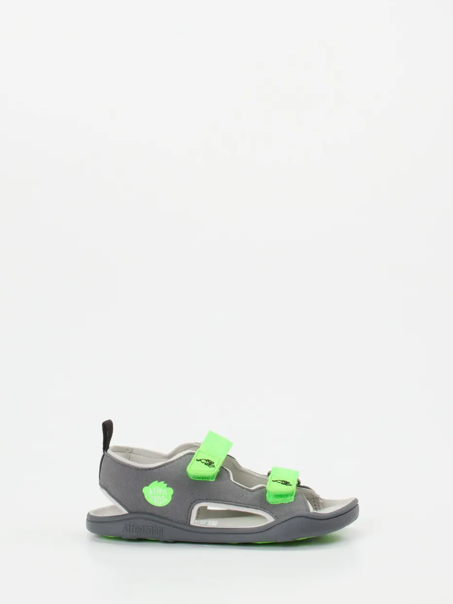 Kindgerecht und funktional für unterwegs.Affenzahn präsentiert eine graue Klettsandale für Kinder mit praktischer Ausstattung. Beim Spielen in der Natur oder auf dem Schulweg bietet die anatomisch geformte Gummisohle sicheren Halt und hohen Tragekomfort. Das recycelte, matte Textilobermaterial sorgt für Robustheit, während das hellgraue Lederfutter weich am Fuß liegt. Neon-grüne Klettverschlüsse mit verspieltem Raubkatzenmotiv, ergonomische Passform und Zuglasche hinten unterstreichen die durchdachte Alltagstauglichkeit. Das Design greift aktuelle Trends wie Neon-Elemente und Utility-Ästhetik auf und passt zu sportiven Sommer-Outfits. Affenzahn kombiniert Funktion, Stil und kindgerechten Komfort in einem durchdachten Gesamtkonzept.