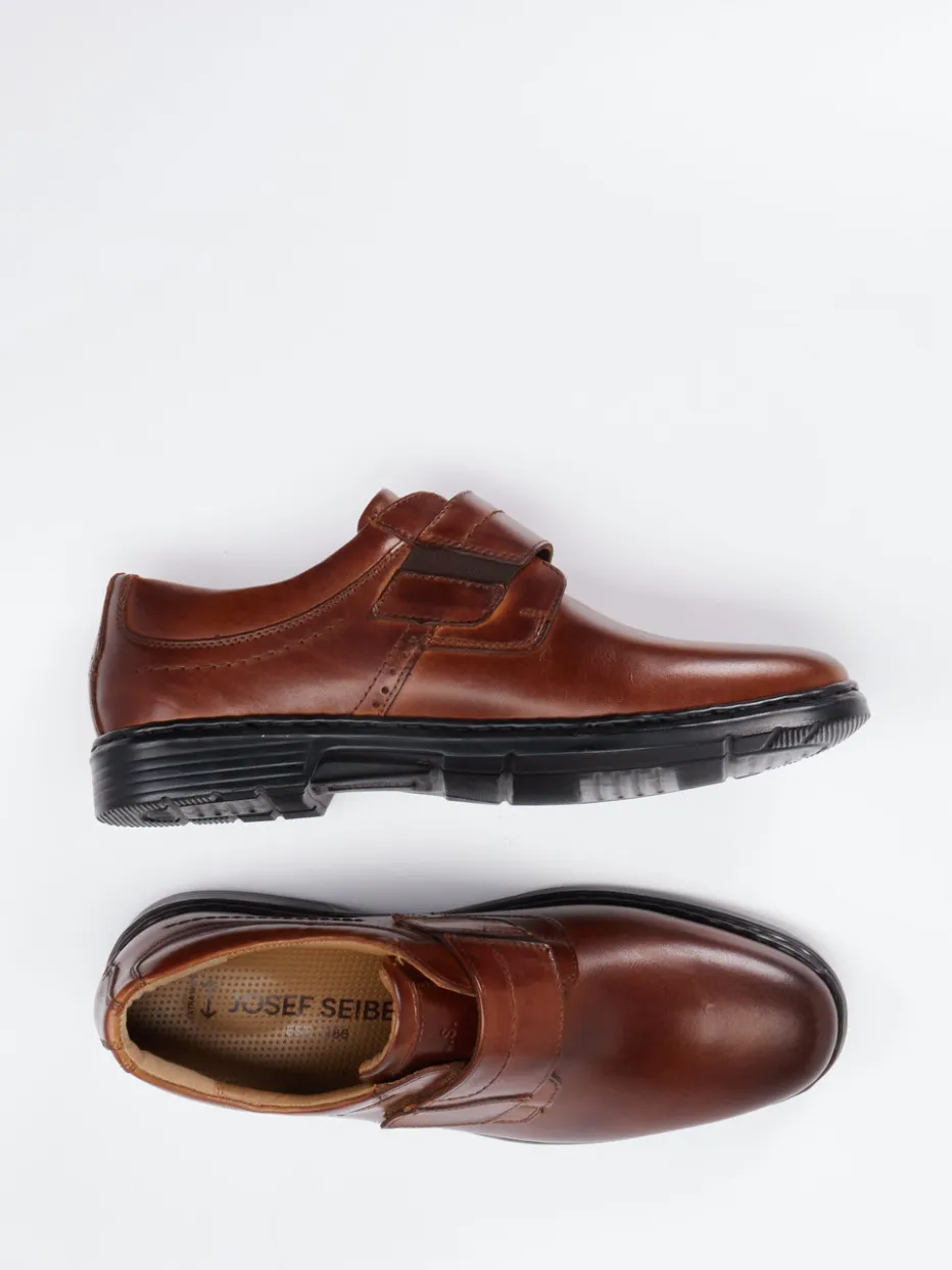 Praktisch-eleganter Komfort für jeden Tag.Josef Seibel präsentiert in der Kategorie Herrenschuhe diesen vielseitigen Klettslipper. Wenn ein komfortstarkes Modell für lange Tage im Büro wie in der Freizeit gefragt ist, bietet dieser Halbschuh besten Mehrwert. Gefertigt aus hochwertigem Kalbleder mit glatter, leicht glänzender Oberfläche zeigt sich das mittelbraune Design klassisch und pflegeleicht. Dezente Ziernähte und ein unauffälliger Klettverschluss unterstreichen die zurückhaltende Formgebung. Die profilierte Gummisohle und der gepolsterte Einstieg sorgen für angenehmes Laufgefühl – auch dank herausnehmbarem Fußbett. Besonders geeignet für den komfortaffinen, klassischen Stiltyp. Josef Seibel steht für durchdachte Bequemlichkeit mit ästhetischer Klarheit.