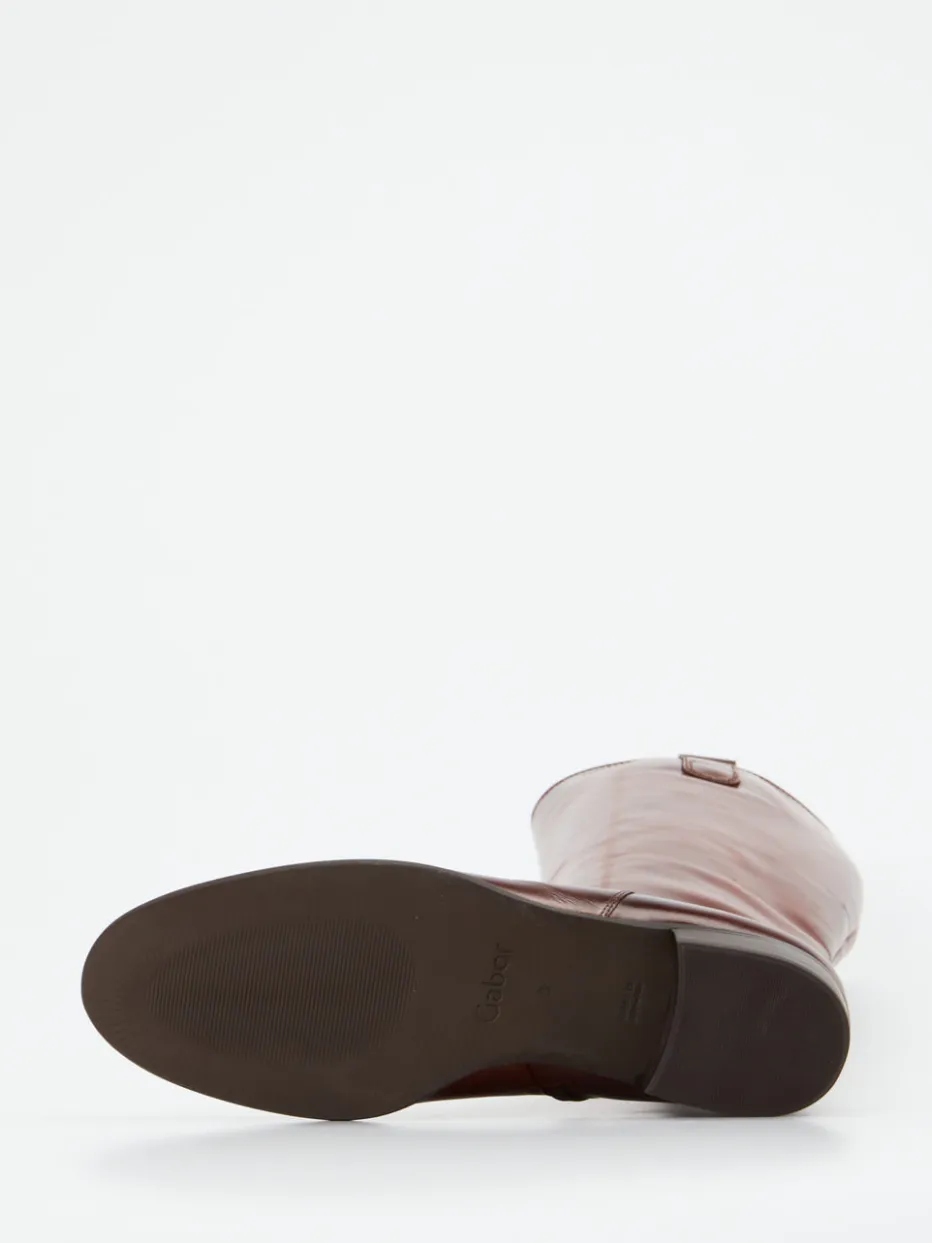 Elegant durch Alltag und Office.Die eleganten Damenstiefel von Gabor reichen bis zum Knie und vereinen klassisches Design mit moderner Funktion. Ob im Büro oder beim Stadtbummel – das kastanienbraune Leder mit glänzender Oberfläche ergänzt vielseitige Outfits. Das hochwertige Glattleder wird durch einen seitlichen Reißverschluss und dezente Zuglaschen funktional ergänzt. Der gerade, schlanke Schaft betont die klare Silhouette, während die profilierte Gummisohle für sicheres Auftreten sorgt. Der Reitstiefel-Stil spiegelt aktuelle Quiet Luxury-Trends wider und passt ideal zu Kaschmirmantel oder Lederaccessoires. Gabor steht für exzellente Verarbeitung und zeitlose Eleganz mit hohem Tragekomfort.