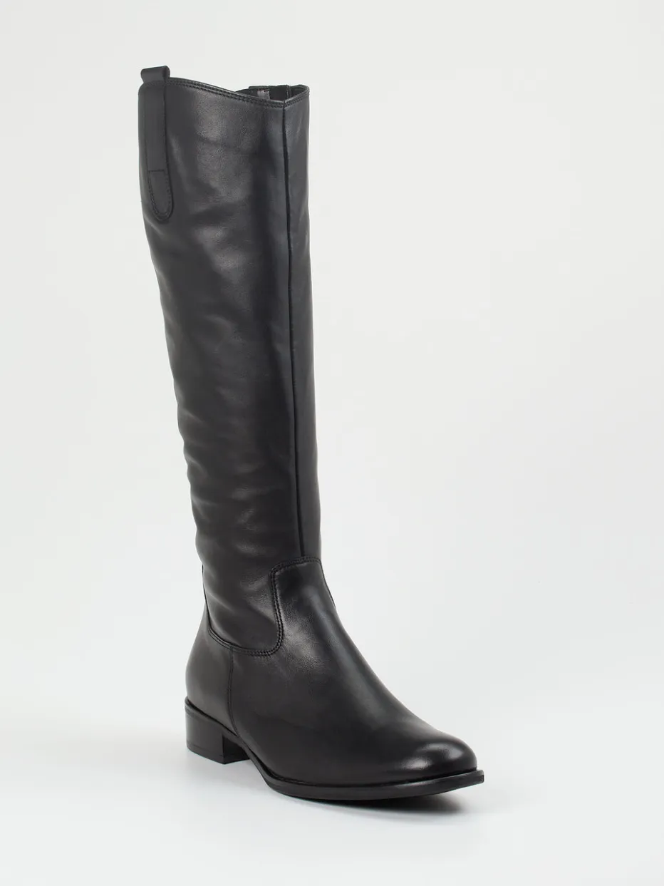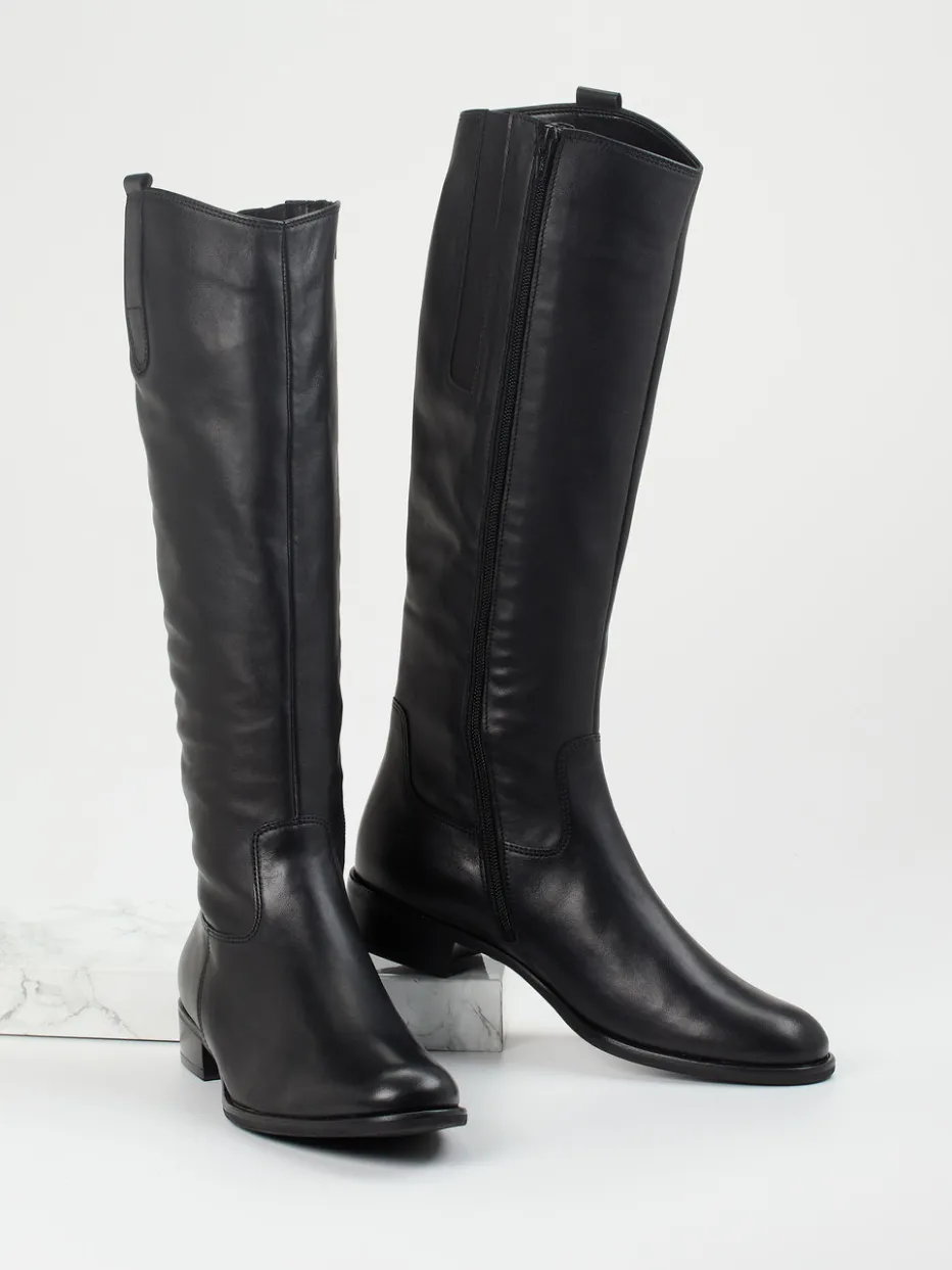 Stilvoll durch Herbst und Winter.Gabor präsentiert einen eleganten Damen-Stiefel für die kühle Saison. Mit seinem klassischen Schwarzton und der klaren Schaftform eignet sich dieses Modell ideal für den Alltag ebenso wie für das Büro. Das hochwertige Kalbleder zeigt sich matt und glatt, unterstrichen von tonigen Steppnähten und subtilen Zuglaschen. Ein seitlicher Reißverschluss ermöglicht bequemes An- und Ausziehen, während der Blockabsatz und die geriffelte Gummisohle Tragekomfort bieten. Inspiriert von Reitstiefeln und dem „Quiet Luxury“-Trend, fügt sich das Design nahtlos in minimalistische Garderoben ein. Passt hervorragend zu Wollmänteln oder klassischen Lederhandtaschen. Zeitlose Klasse und funktionales Design in bewährter Gabor-Qualität.
