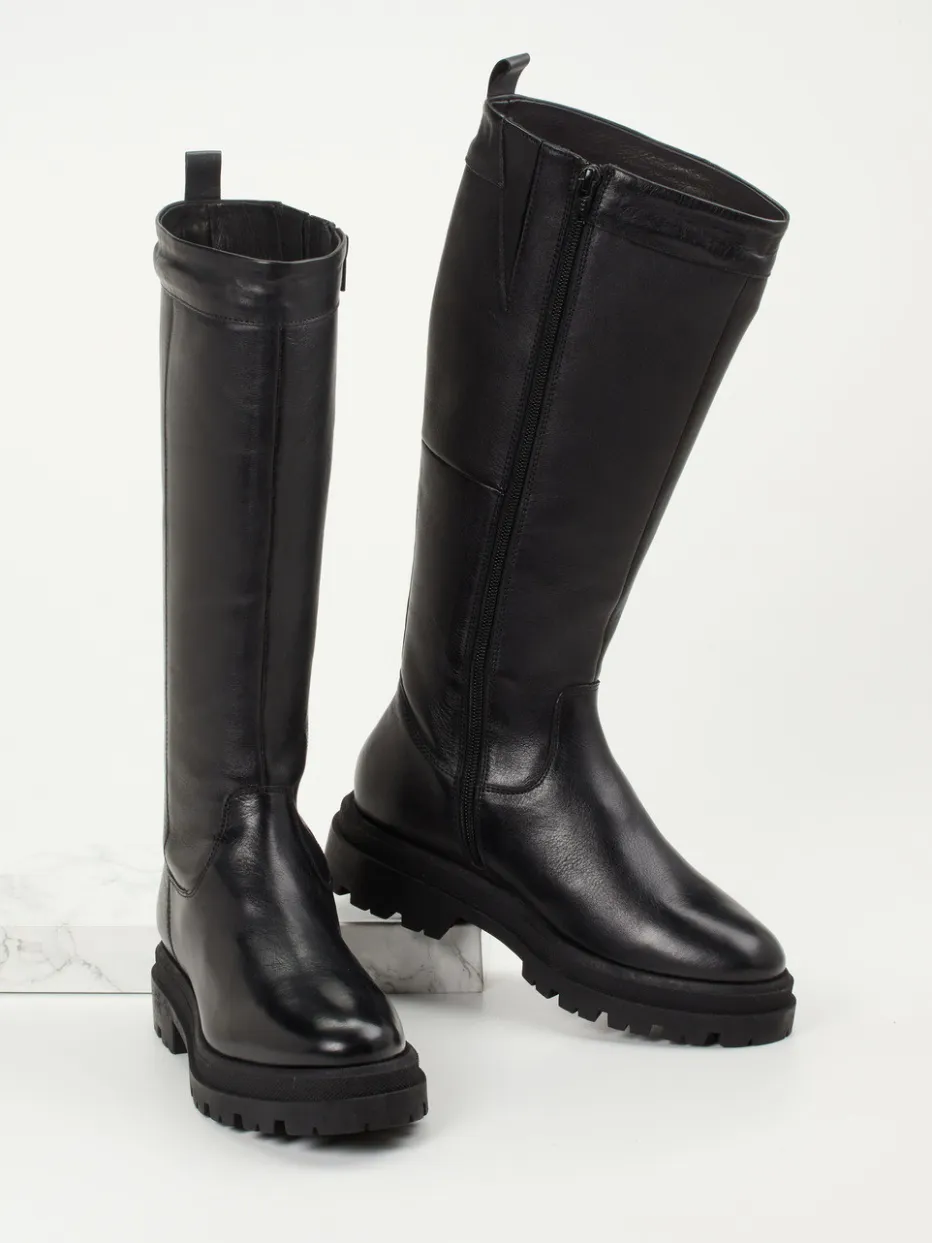 Der kniehohe Damen-Stiefel von Sioux überzeugt durch geschmeidiges Kalbleder und eine profilierte Gummisohle – ideal für stilvolle Herbst-Looks mit funktionalem Anspruch.
