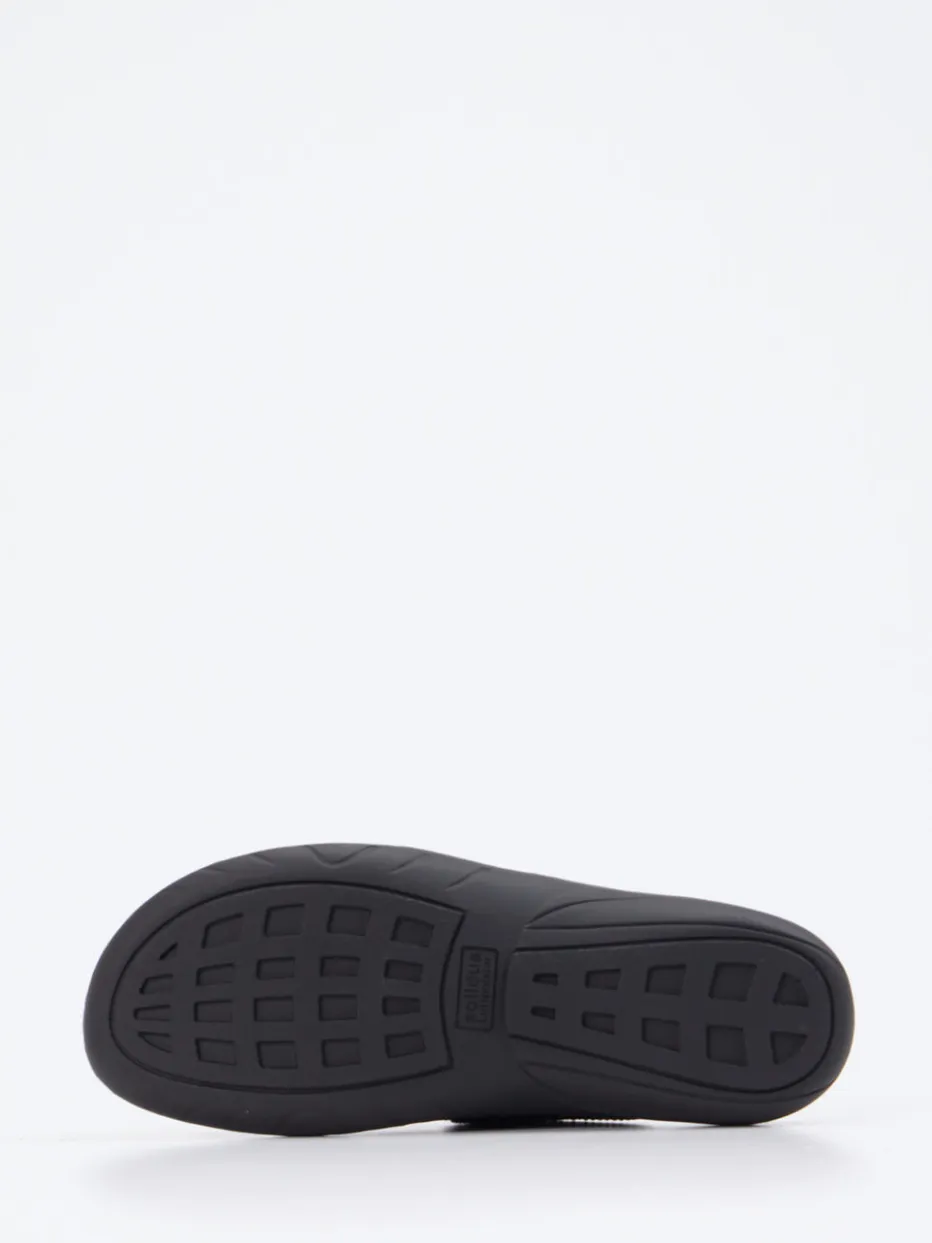 Diese ergonomisch geformte Pantolette kombiniert hochwertigen Materialmix mit durchdachtem Komfortdesign – ideal für entspannte Tage zuhause oder im Alltag.