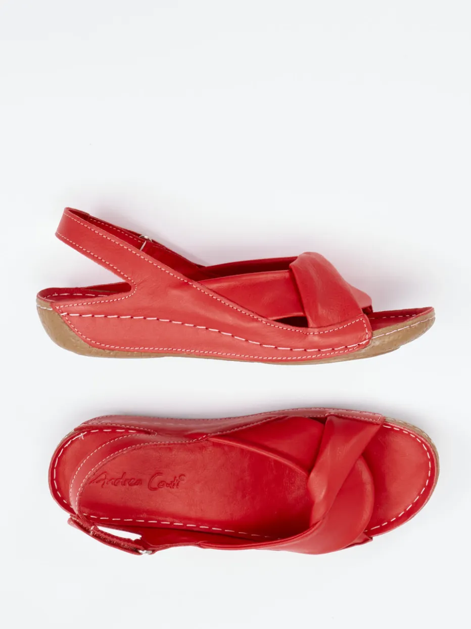 Alltagstauglich mit Komfortanspruch.Andrea Conti präsentiert mit dieser Komfort-Sandale eine sommerliche Damenbegleitung. Ideal für Stadtbummel und Gartenpausen: Weiches, rotes Kalbleder mit matter Oberfläche trifft auf eine ergonomisch geformte Gummisohle mit subtiler Keilform. Weiße Kontrastnähte, gekreuzte Riemenpartien und ein weitenverstellbarer Klettverschluss sorgen für funktionale Akzente und modische Lässigkeit. Das geschlossene Fersenteil sorgt für angenehmen Halt, während die weich gepolsterte Innensohle Tragekomfort maximiert. Trendbewusst bewegt sich das Modell zwischen Casualwear und „Soft Comfort“. Ein stilvoll bequemer Begleiter mit anspruchsvoll-legerer Handschrift von Andrea Conti.