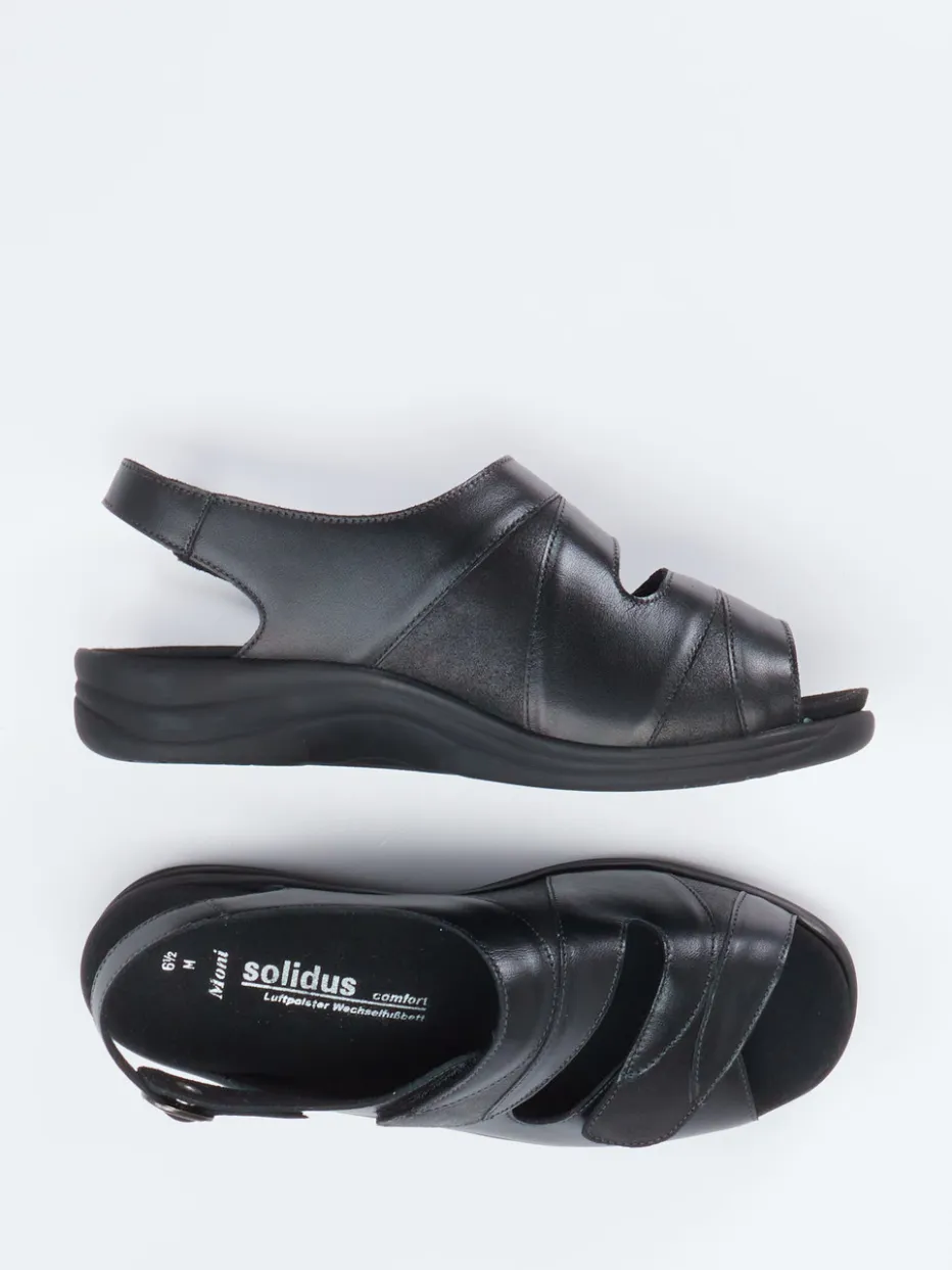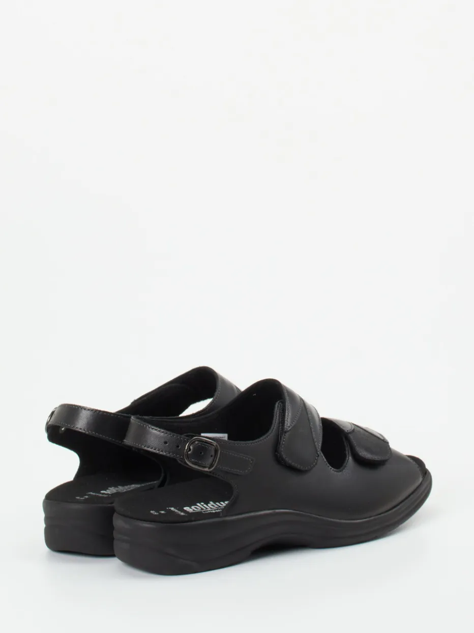Die Marke Solidus präsentiert mit dieser Komfort-Sandale eine verlässliche Begleiterin für entspannte Tage. Die ergonomisch geformte Sohle sorgt für spürbare Entlastung bei längeren Wegen und zuhause.