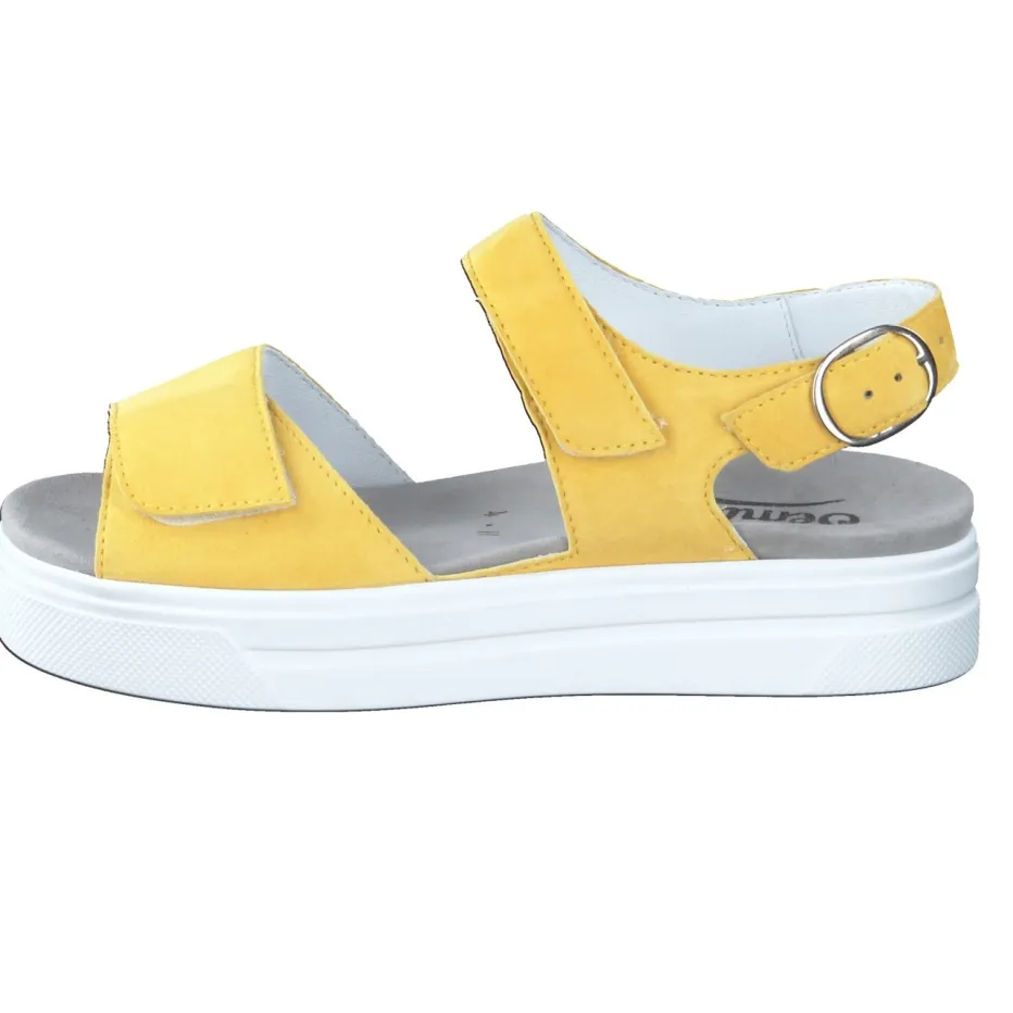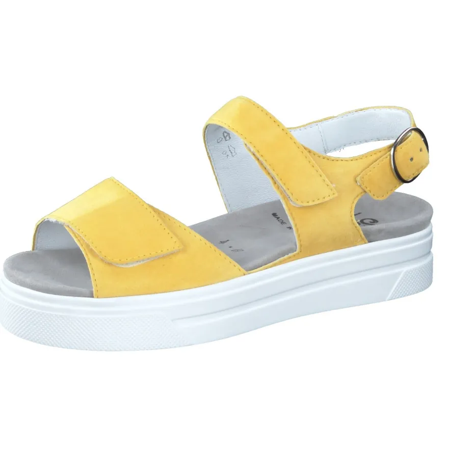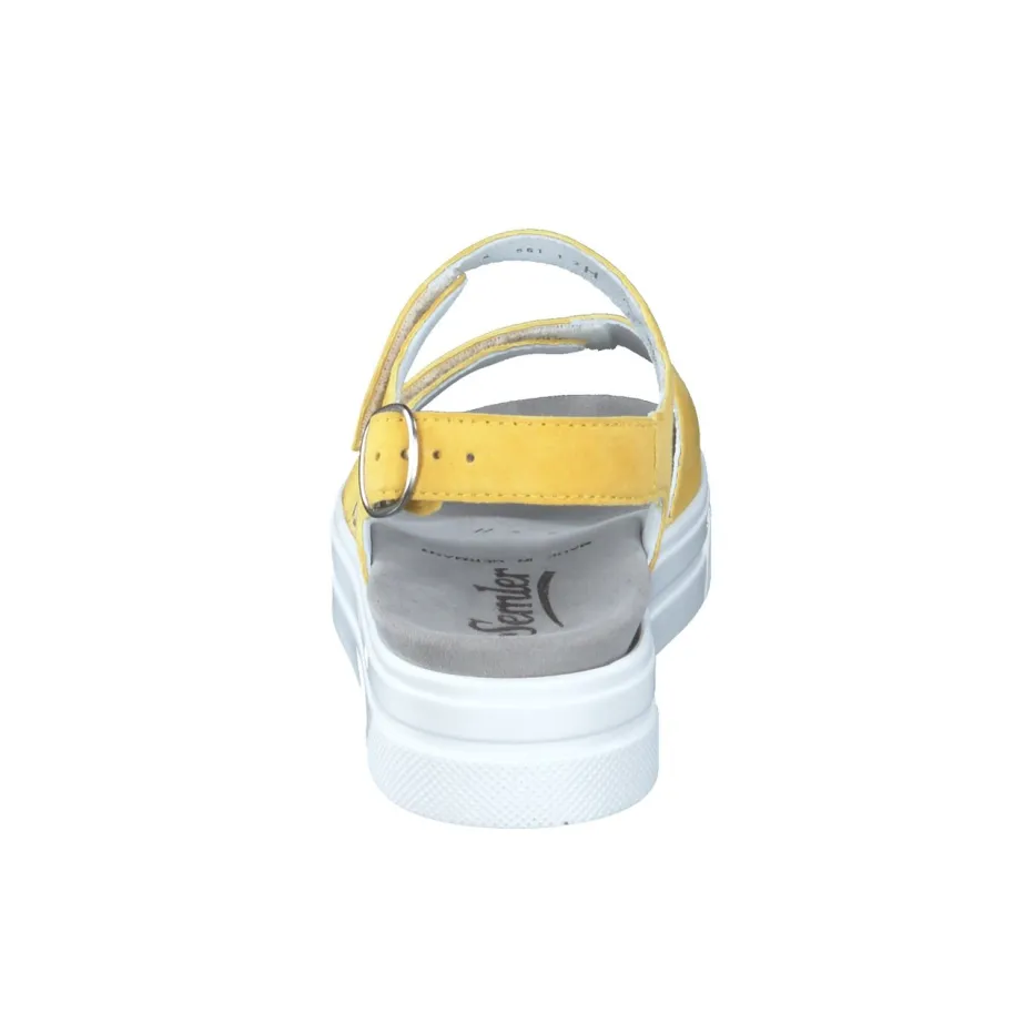 Die Marke Semler präsentiert eine komfortorientierte Plateau-Sandale aus der Linie Anna. Als verlässlicher Begleiter im Alltag oder im Urlaub punktet das Modell mit hochwertigem Veloursleder in leuchtendem Gelb.