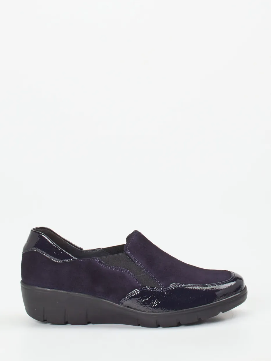 Ein bequemer Slipper in komfortabler Weite H, der mattes Veloursleder mit glänzenden Lacklederakzenten kombiniert – designt für stilvolles Wohlbefinden im Alltag.
