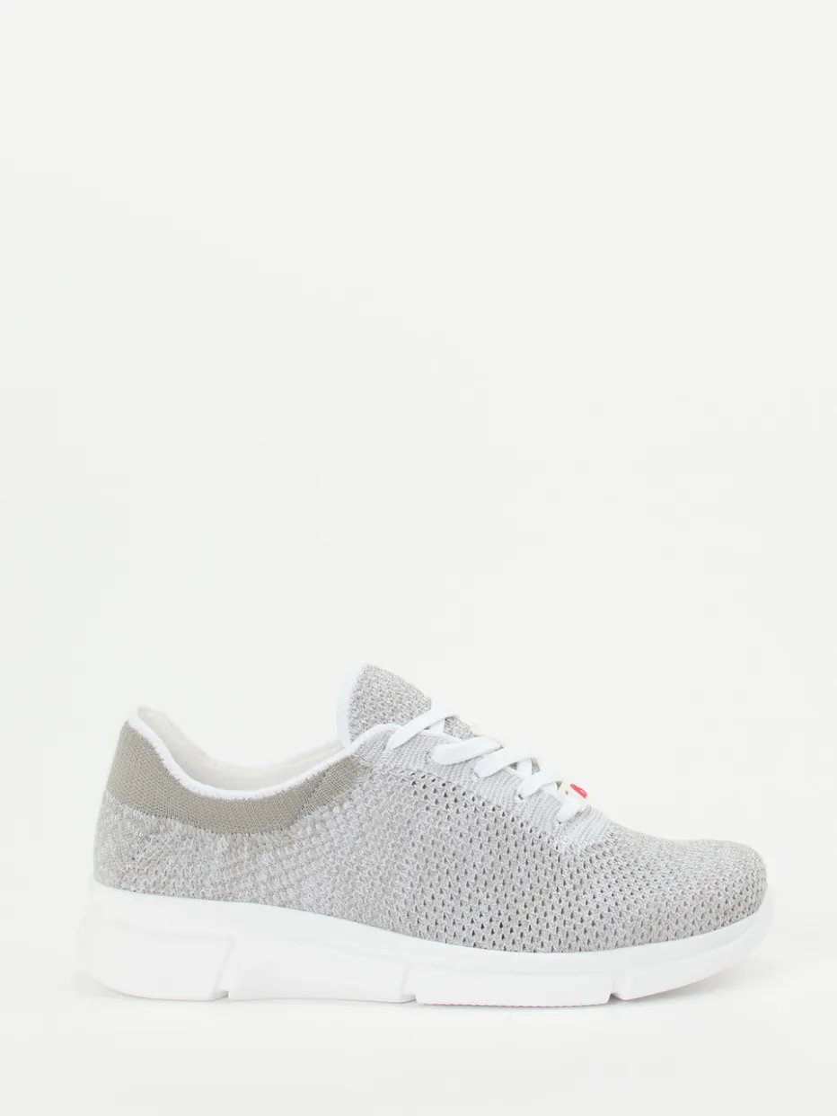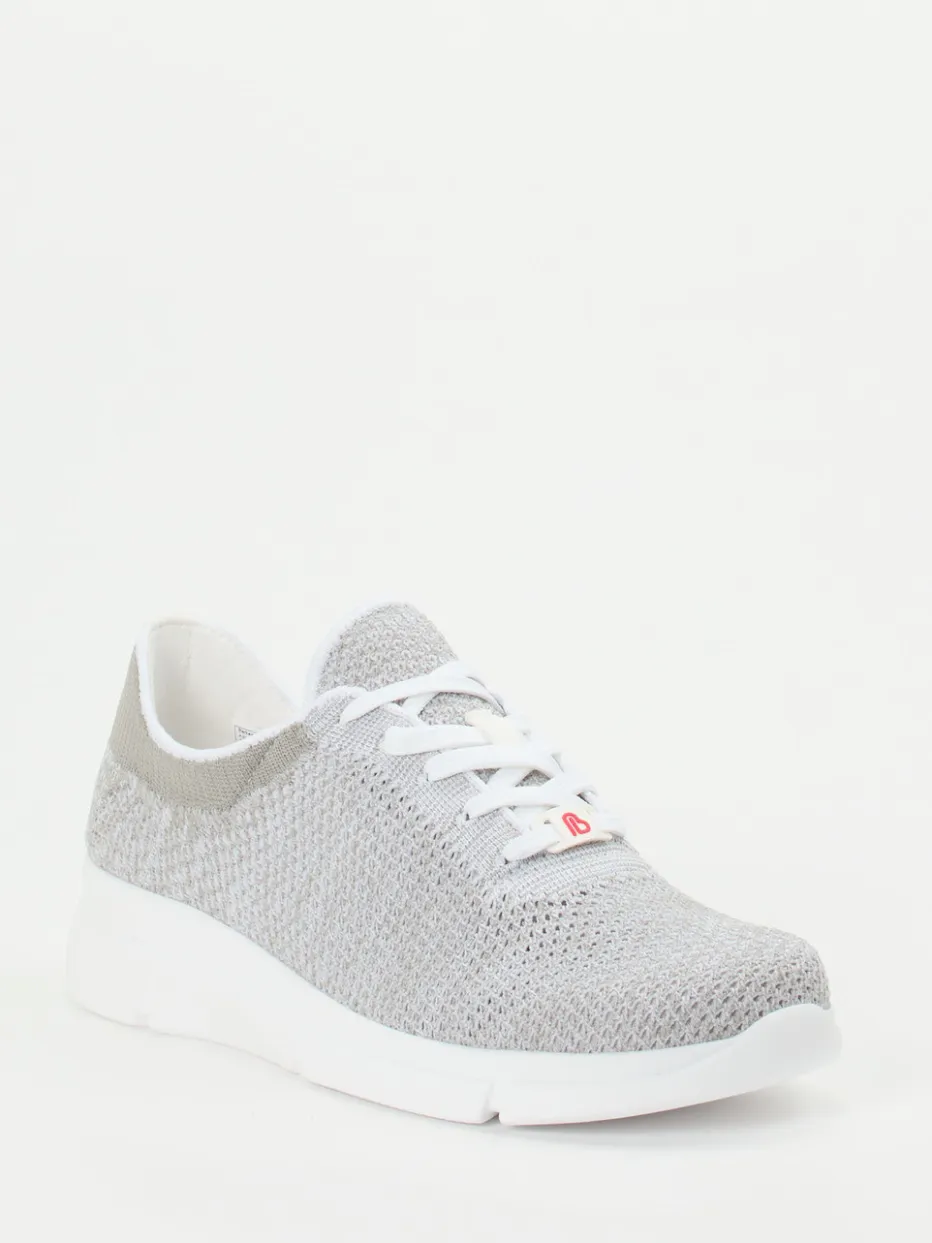 Strick trifft Ergonomie.Berkemann präsentiert einen sportlichen Komfort-Sneaker für Alltag und Freizeit. Das Modell überzeugt mit seinem gestrickten Textil-Obermaterial in Hellgrau, das luftig verarbeitet ist und zusammen mit der weißen Gummisohle für einen modernen Look sorgt. Die flache, ergonomisch geformte Sohle bietet Dämpfung und Stabilität – auch bei längeren Einsätzen. Ein gepolsterter Einstieg sowie elastische Einfassungen unterstützen die angenehme Passform. Weiße Schnürsenkel und ein rotes Logo-Element auf der Zunge setzen dezente Akzente im minimalistischen Design. Berkemann verbindet überzeugenden Tragekomfort mit gelungener Leichtigkeit.