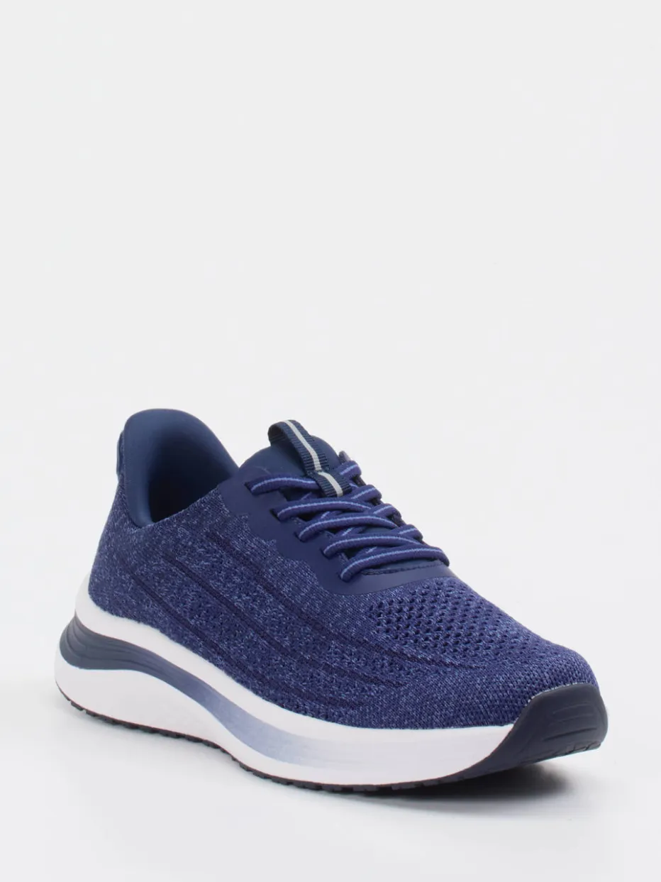 Sportlicher Komfort neu gedacht.Orthofeet präsentiert einen innovativen Komfort-Sneaker für Freizeit und Bewegung. Ob auf dem Weg ins Studio oder beim Stadtbummel – das gestrickte Textil-Obermaterial in Marineblau verleiht diesem Sneaker eine luftige Leichtigkeit und passt sich dem Fuß angenehm an. Die sportlich-abgerundete Silhouette wird durch den gepolsterten Einstieg und eine profilierte Gummisohle ergänzt. Schnürung, Ton-in-Ton-Design und zweifarbige Zungenschlaufe setzen dezente Akzente. Dank orthopädischer Innensohle eignet sich der Schuh auch für längeres Tragen. Ein klarer Athleisure-Trend mit minimalistischem Look. Orthofeet-Komfort trifft auf moderne Funktionalität mit Stilbewusstsein.